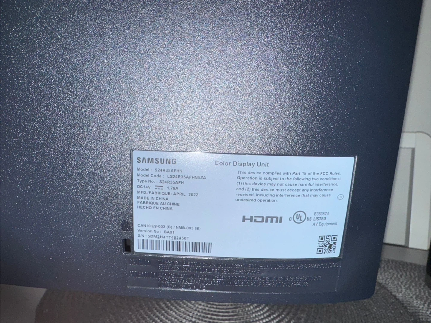 This is Samsung S24R35AFHN with a 24-inch Full HD (1920×1080) monitor with a sleek, bezel-less design, perfect for multi-monitor setups. ✅ Includes power adapter and HDMI cable ✅ Original box included Near Lougheed Towncentre Price Negotiable**