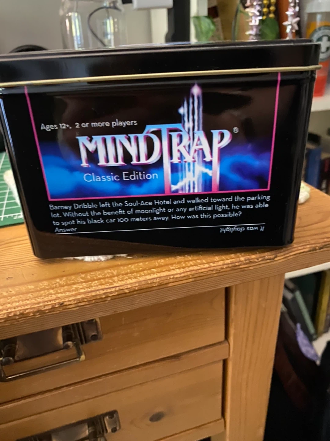 Selling a gently used MindTrap Classic Edition board game! It's a perfect trivia game for ages 12 and up, and can be played with 2 or more players. The game includes the instructions and all the pieces needed for a fun and challenging experience