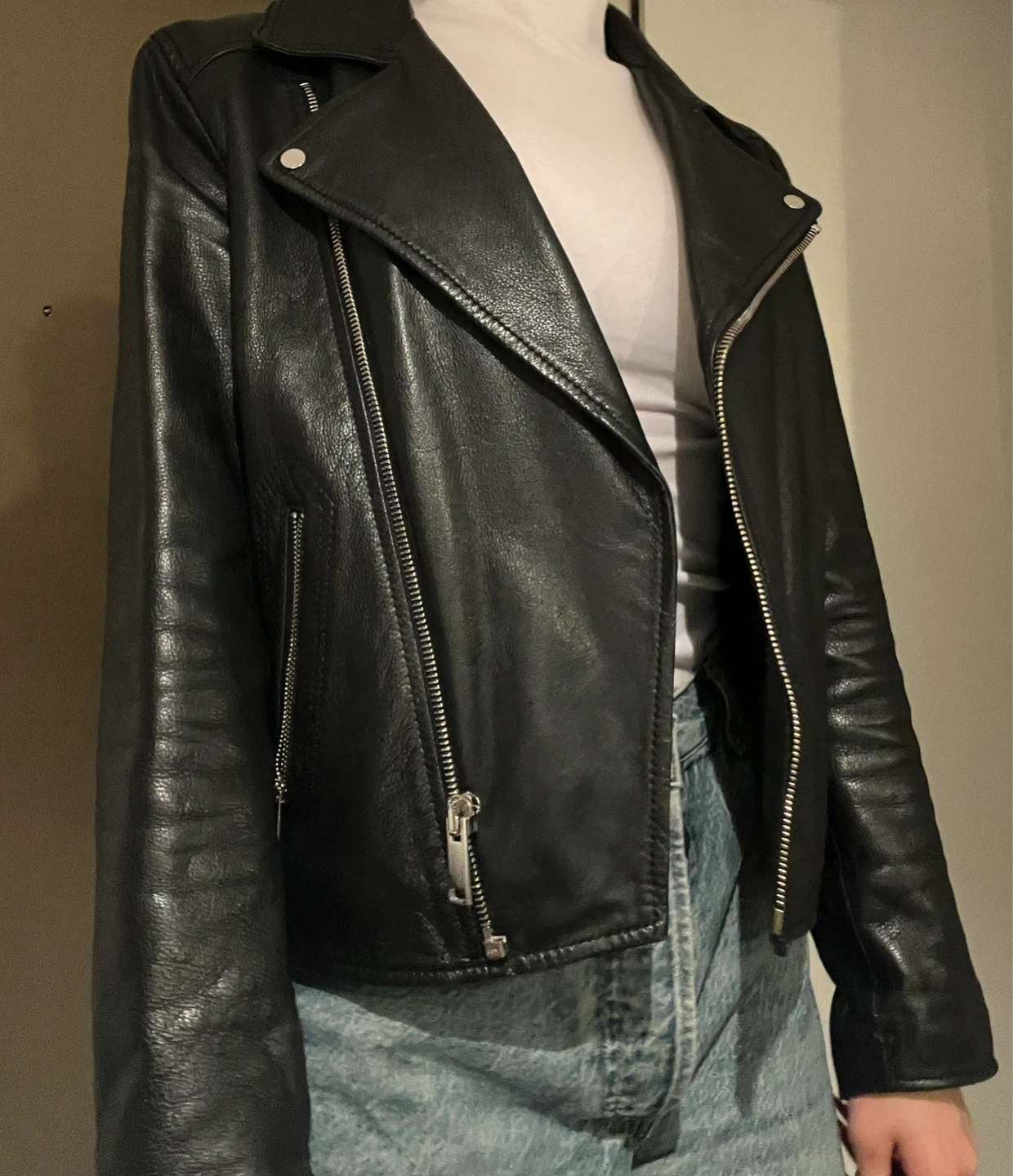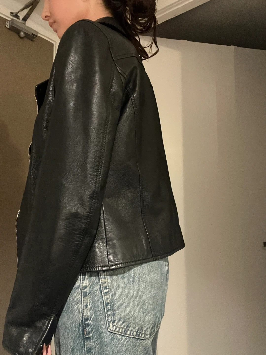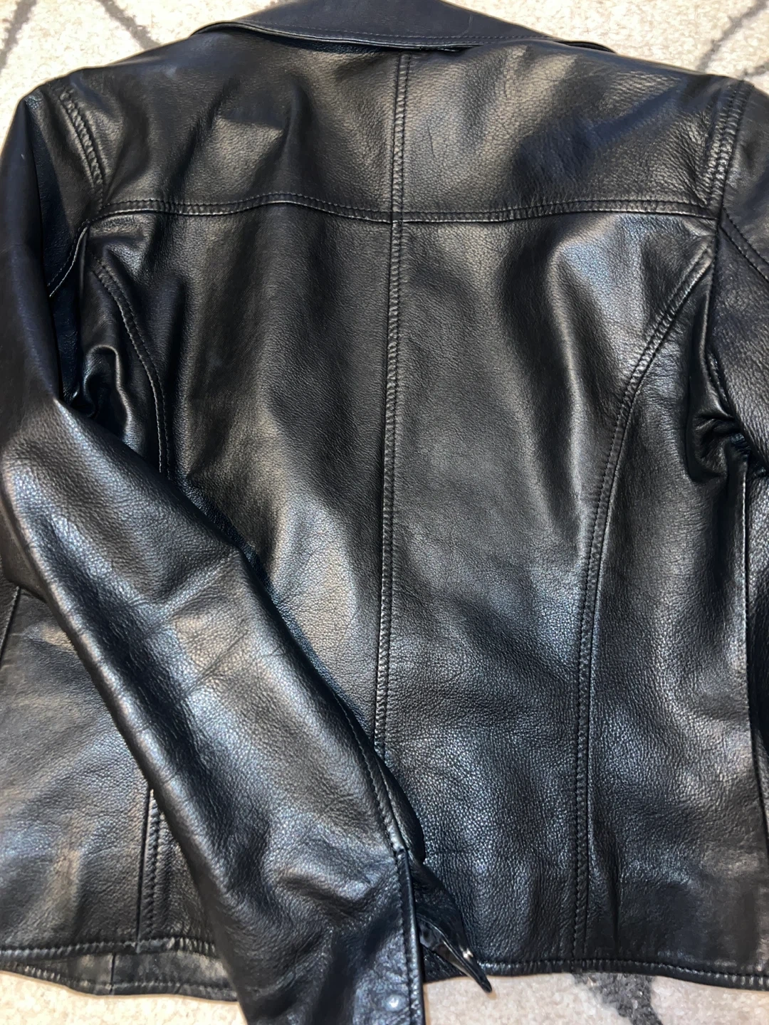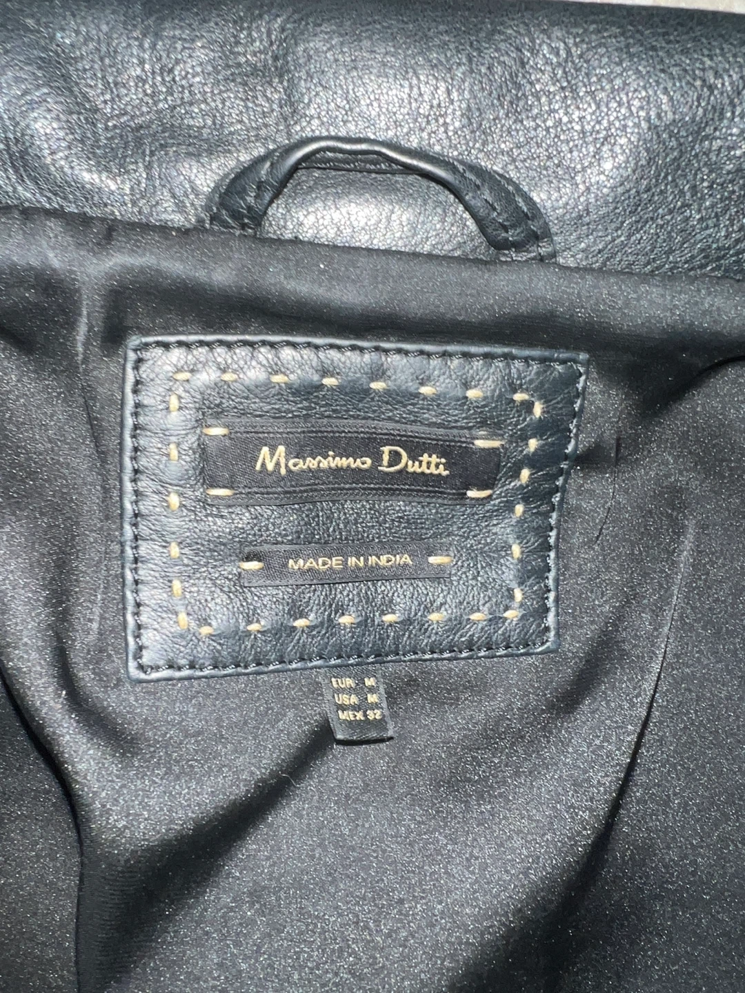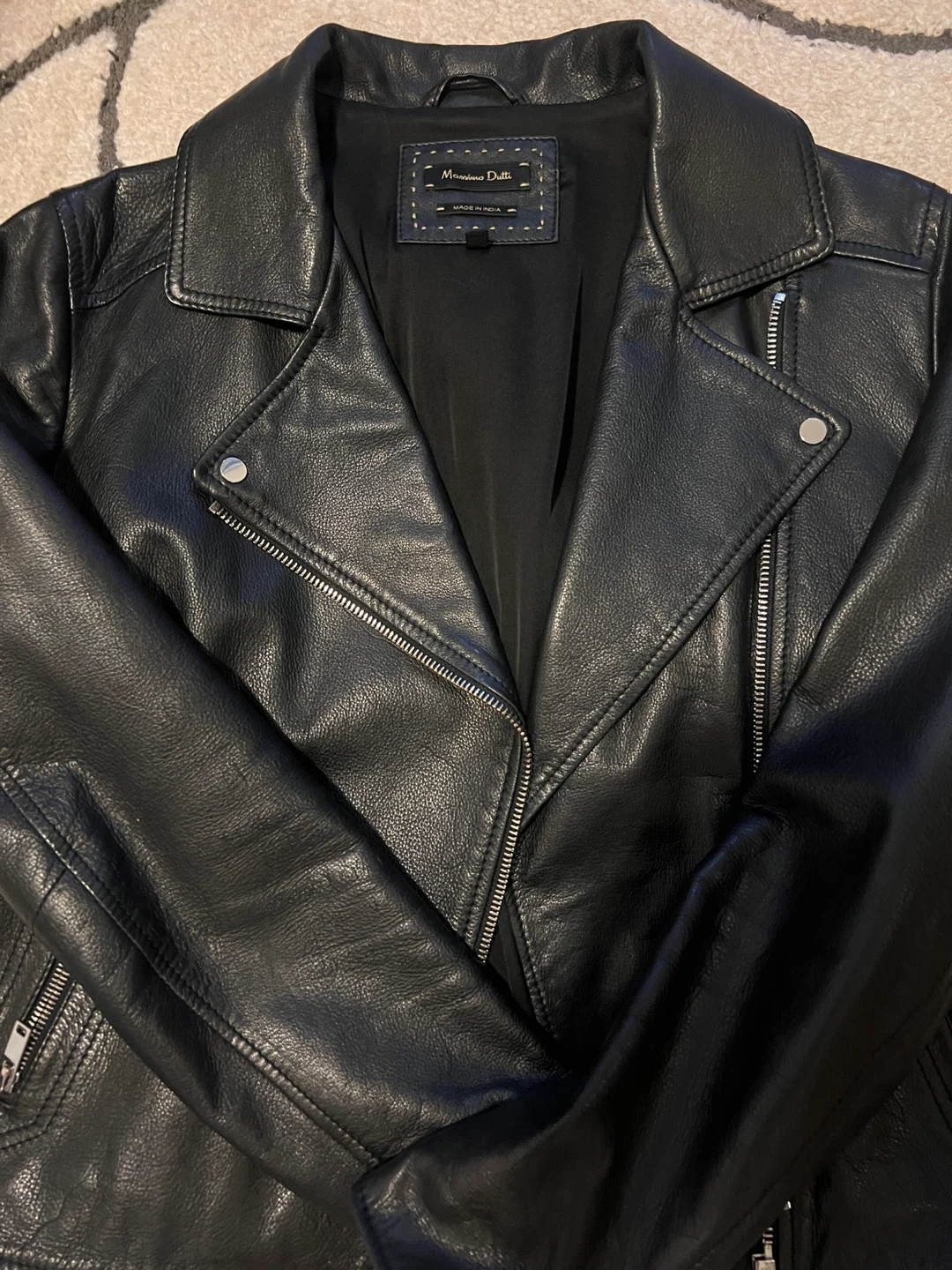Massimo Dutti Black Leather Biker Jacket,bought in Spain 2 years ago for 300€ 100%Real leather Label size m in reality fits xs-s