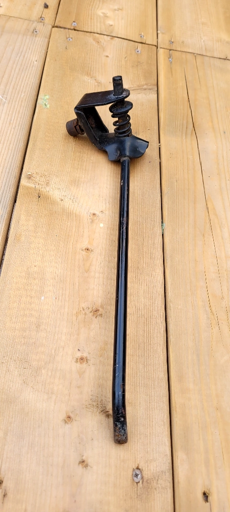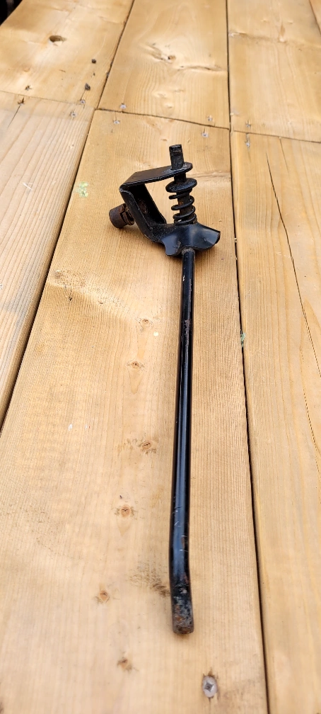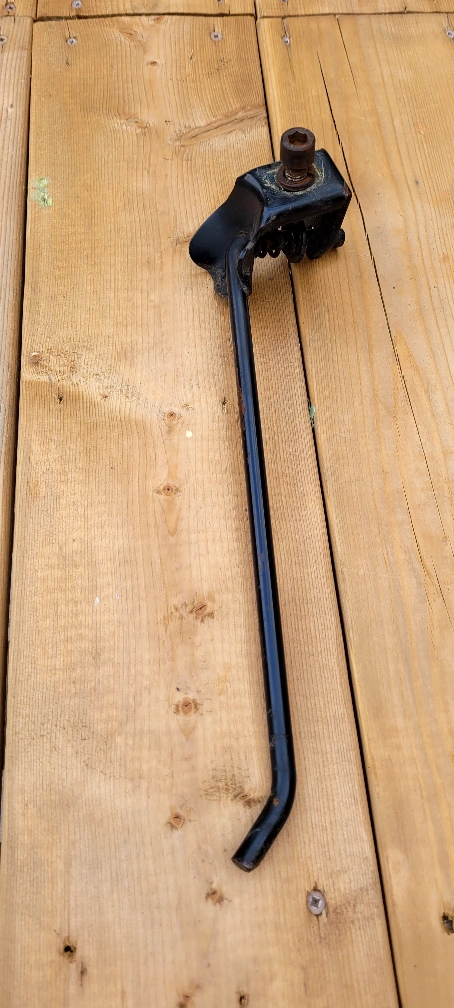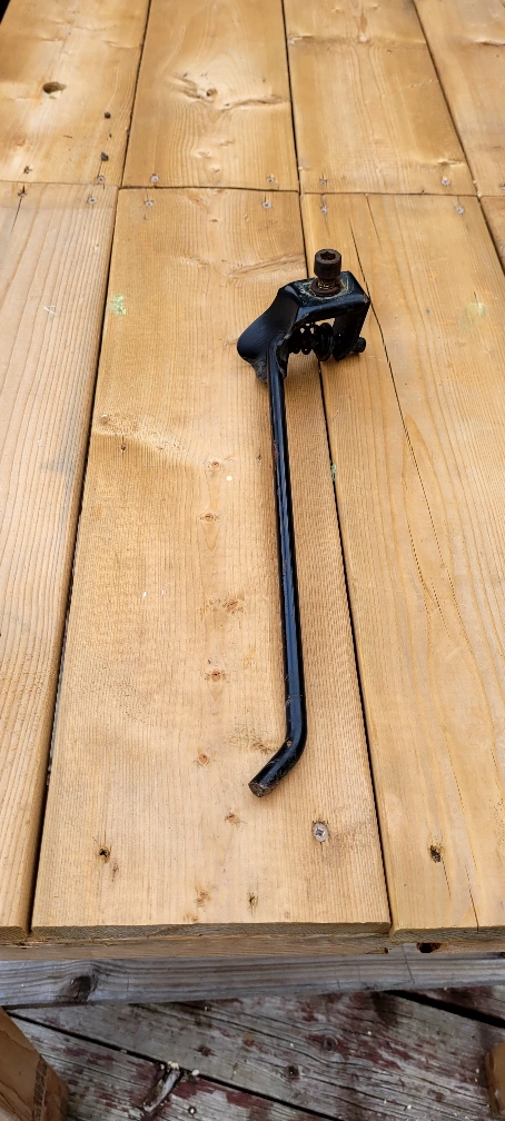 Selling a used bicycle kickstand. It's black and appears to be in working condition. Great for keeping your bike upright!