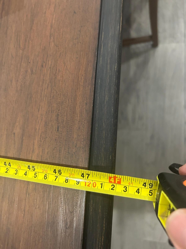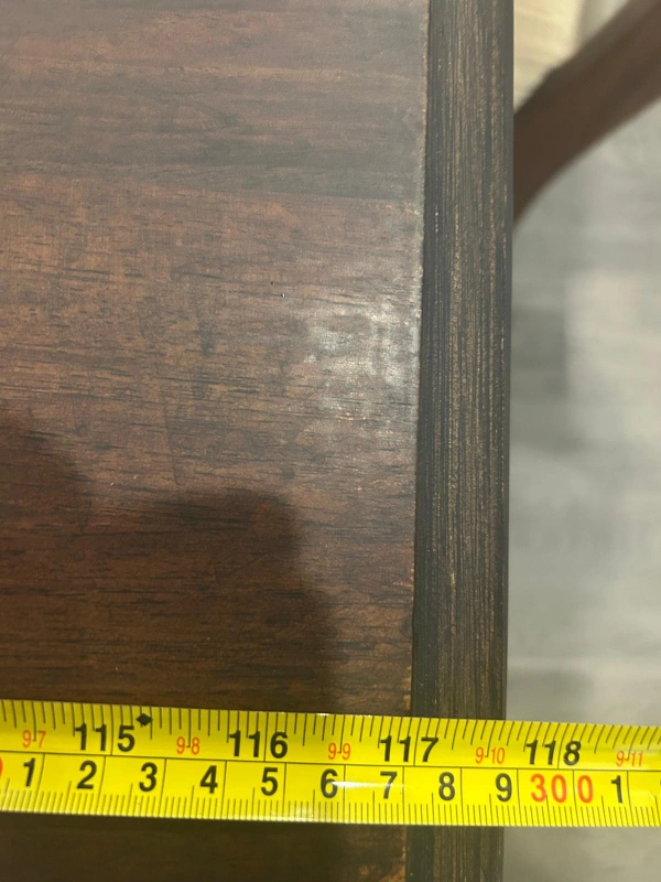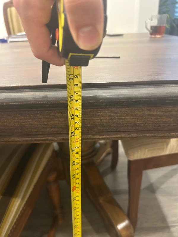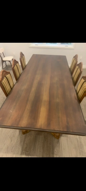 Selling a large wooden dining table. walnut wood , The table measures approximately 117cm in width and 31 inches in height. It comfortably seats a large group and would be perfect for family gatherings or dinner parties