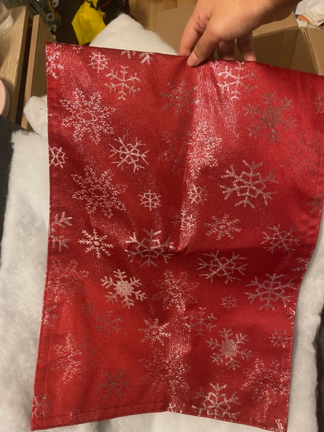 Star preparing for holidays! Add a festive touch to your dining table with this lovely red table runner! It features a beautiful snowflake pattern that's perfect for the holiday season. It's in new and ready to bring some cheer to your home