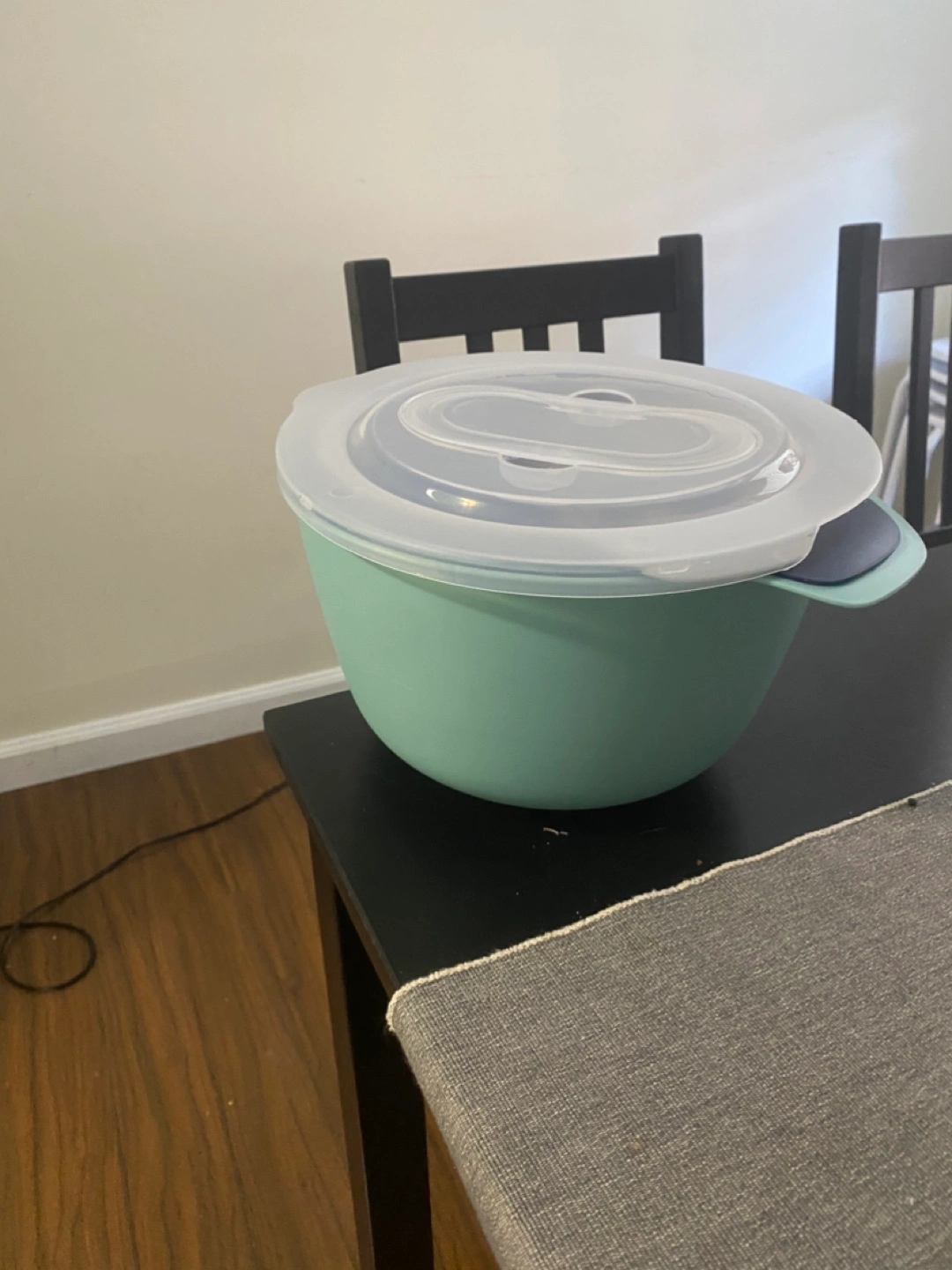 Selling a set of mixing bowls that come with lids! They're in great shape and ready for a new home. The set includes different sizes, perfect for all your cooking and baking needs