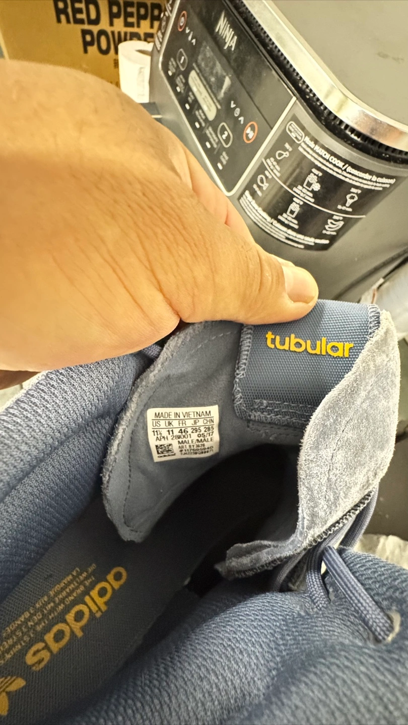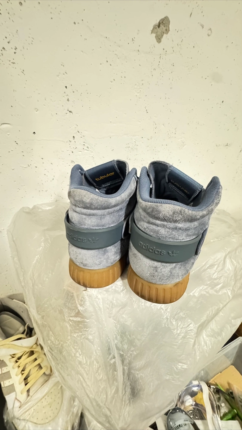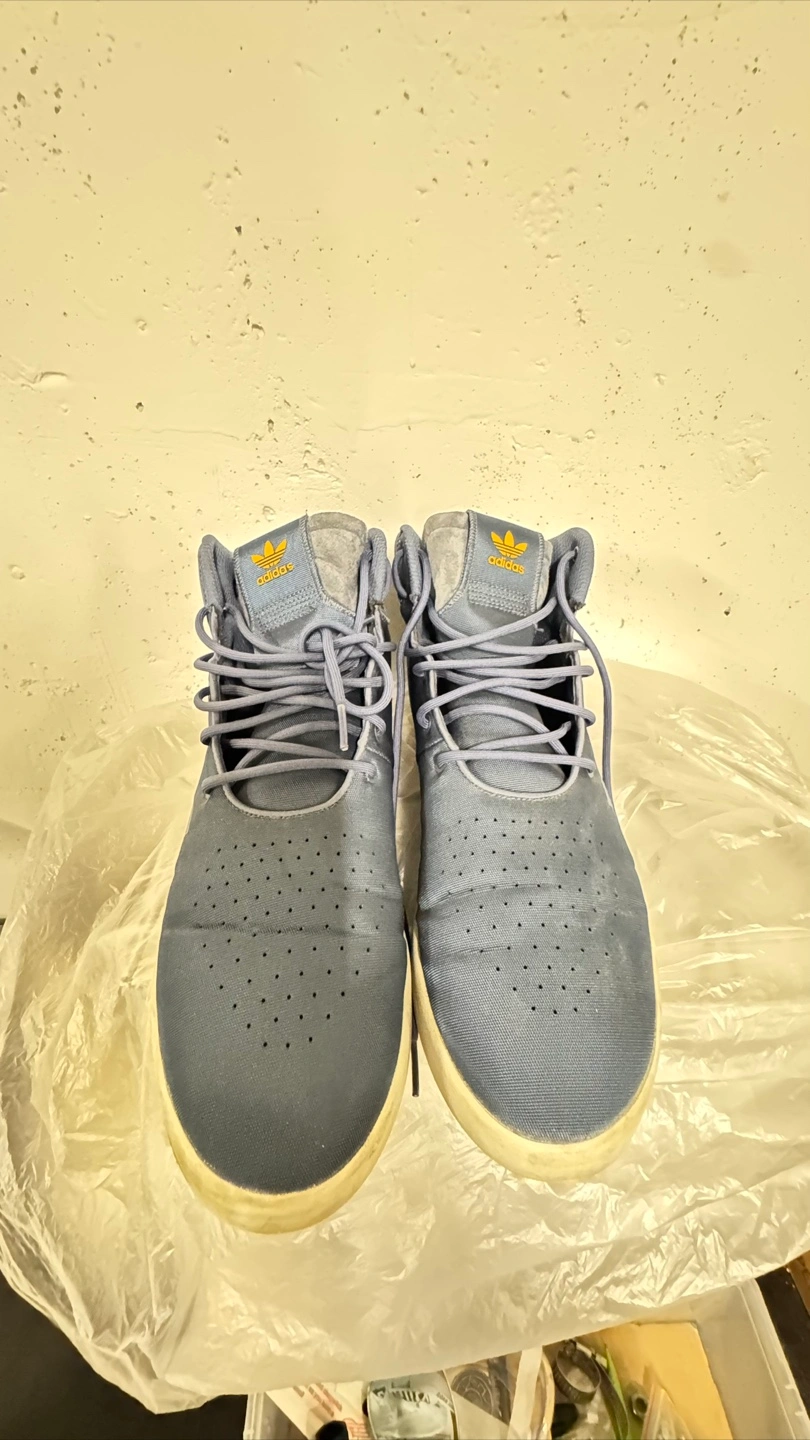 Selling a pair of Adidas Tubular high-top sneakers in size 11. 5 They're a stylish blue colour and in good condition. The size is US 11, UK 11, FR 46, JP 290, CHN 285. Perfect for adding a bit of flair to your everyday look!