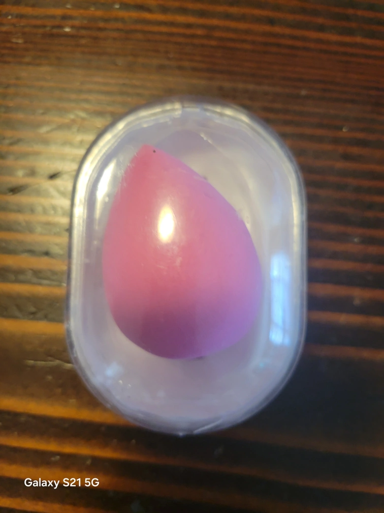 Selling a pink makeup sponge in its container. It's in good condition and ready for a new home! not used brand new.