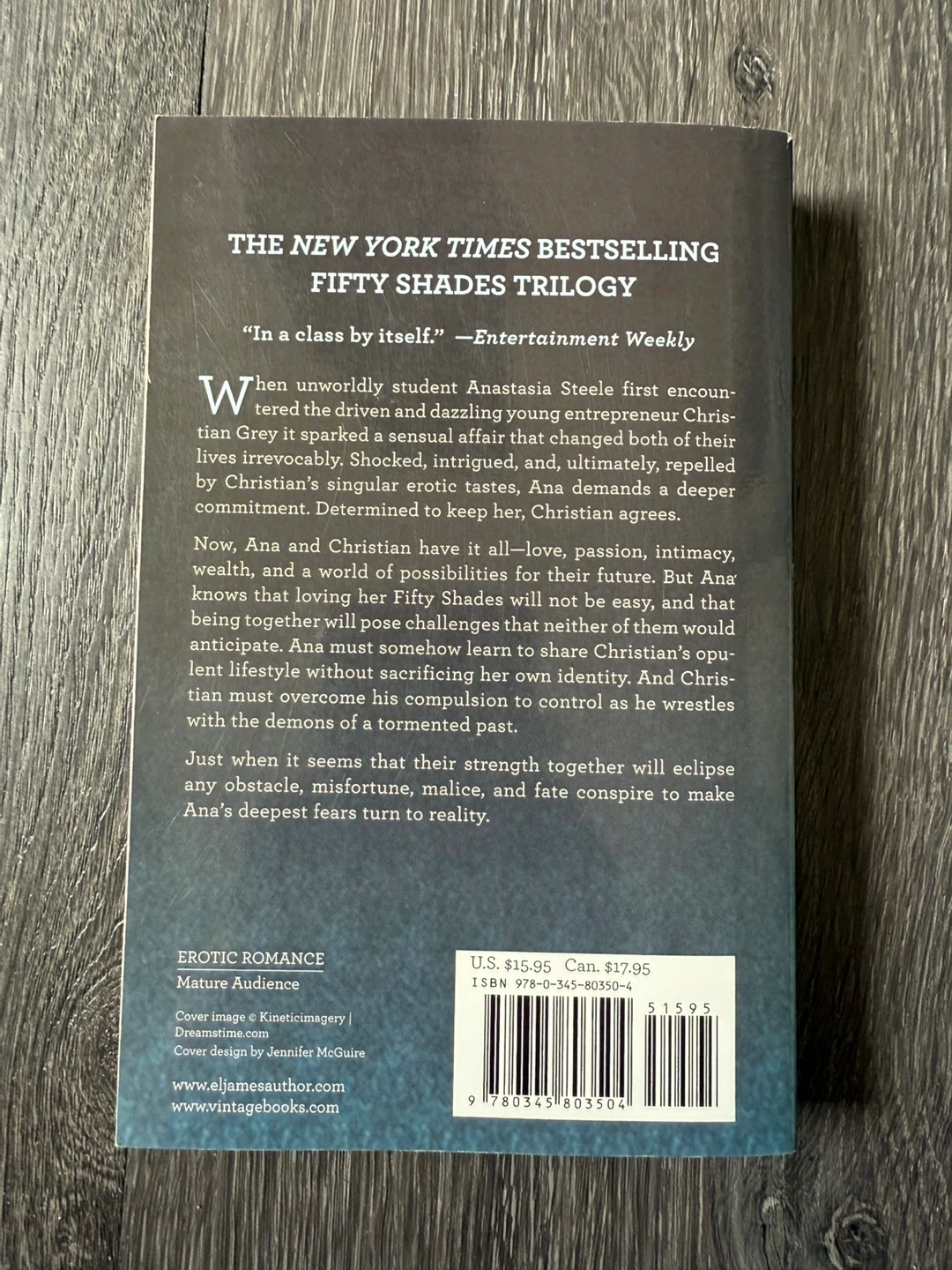 💍 Fifty Shades Freed – E. L. James ✨ The final book in the #1 New York Times bestselling Fifty Shades Trilogy. Storyline: Ana and Christian finally have it all—love, passion, wealth, and a future full of possibilities. But their happily-ever-after doesn’t come without obstacles. Ana must learn to live in Christian’s lavish world without losing herself, while Christian struggles to overcome the demons of his past. Just when their bond is tested the most, danger and fate threaten to unravel everything they’ve built together. 📖 Condition: Good – gently used, no damage 📍 Location: Cranston 💲 Price: $10 Perfect for readers looking to complete their Fifty Shades collection and fans of passionate, dramatic romance.