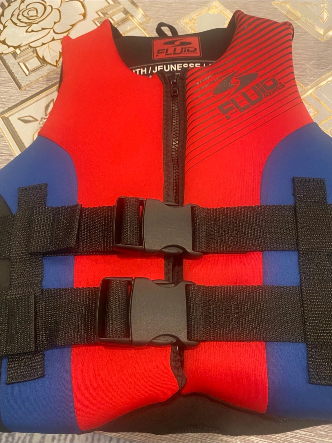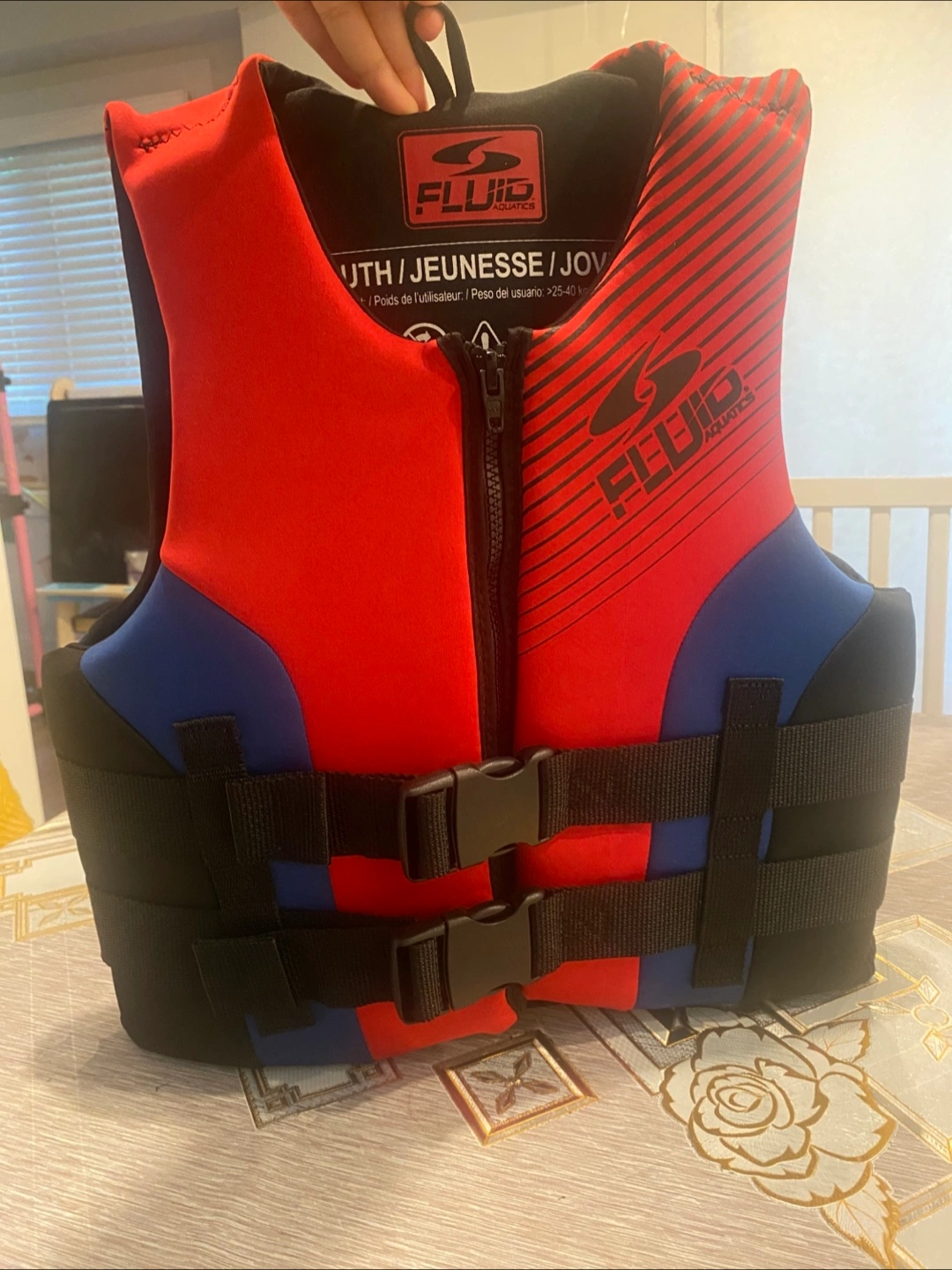 - For kids 25–40 kg (55–88 lbs) - Soft, comfy material - Front zipper with 2 adjustable buckles - Coast Guard approved for water safety
