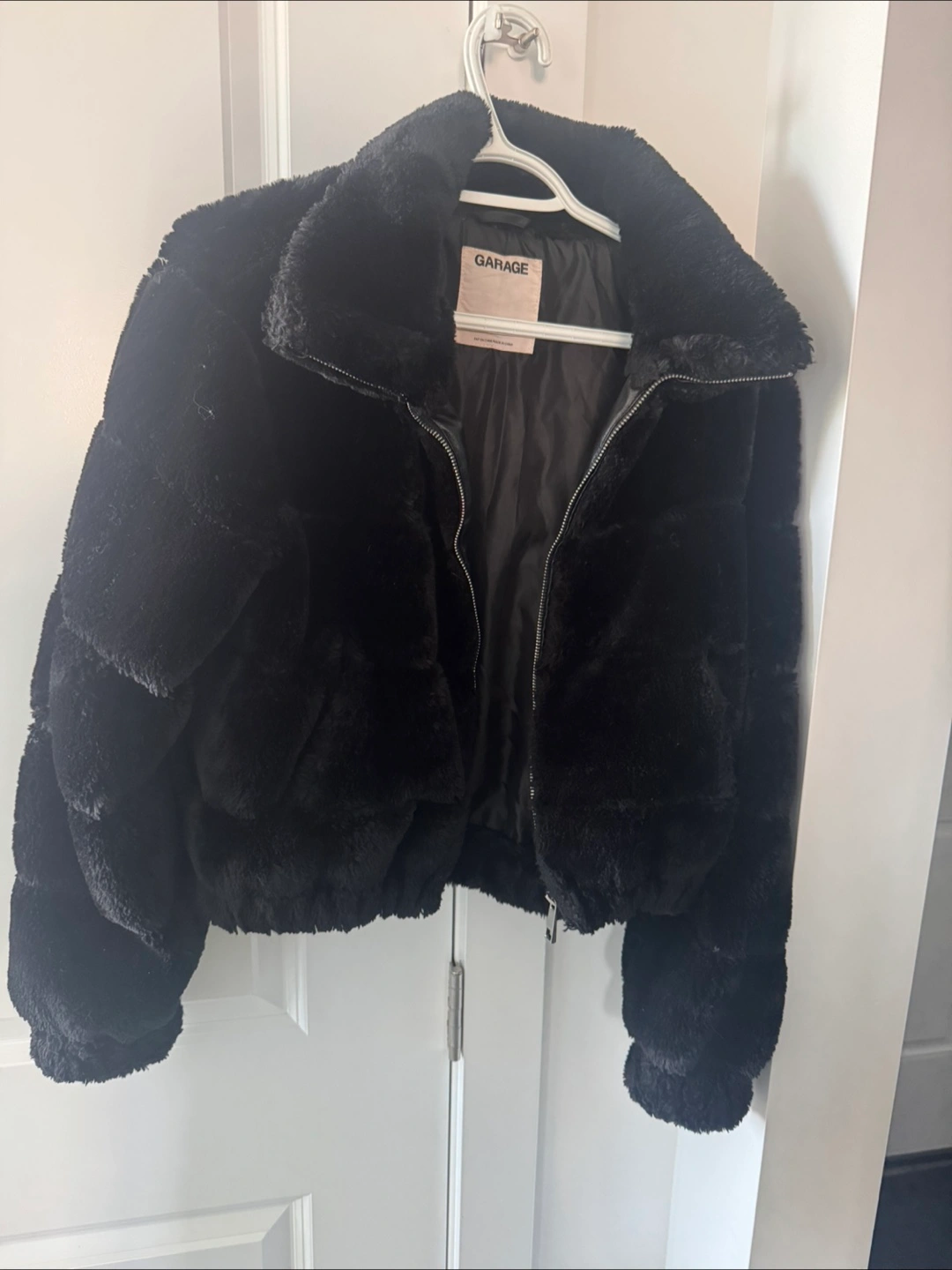 Here's a super cozy Garage black faux fur cropped jacket! It's in great condition and ready to keep you warm and stylish