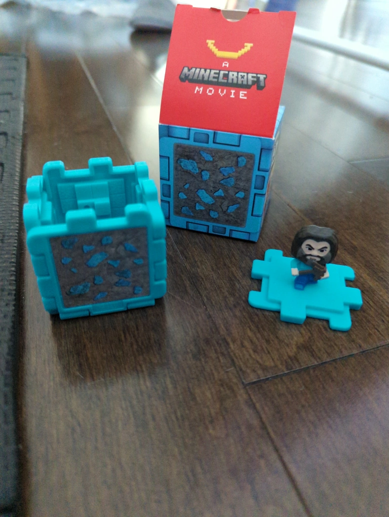 giving away a cute Minecraft Movie toy set! Includes a small figure and a building block piece, comes in its original box 🚭 Smoke / Pet Free Home 🏡
