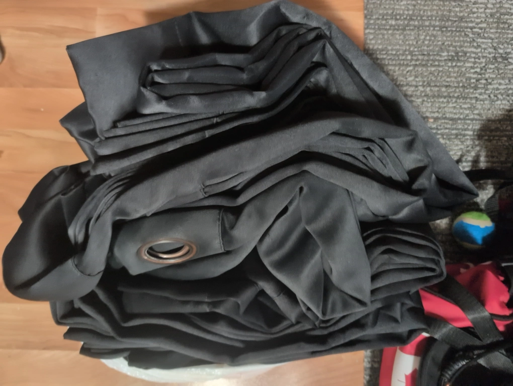 Selling a black curtain panel. It measures approximately 55 inches wide by 62 inches long. It's in great condition and ready to add some privacy to your space.I have 8 pieces no