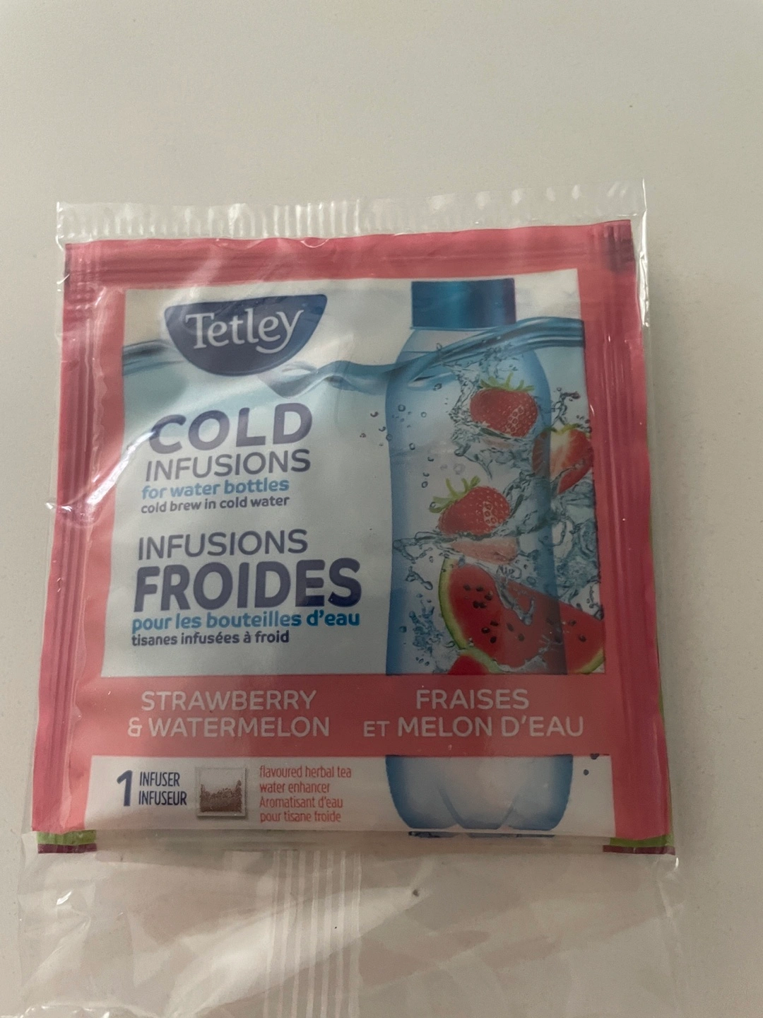 Selling a Tetley Cold Infusions packet in Strawberry & Watermelon flavour! Perfect for adding a little something to your water bottle for a cold brew on the go