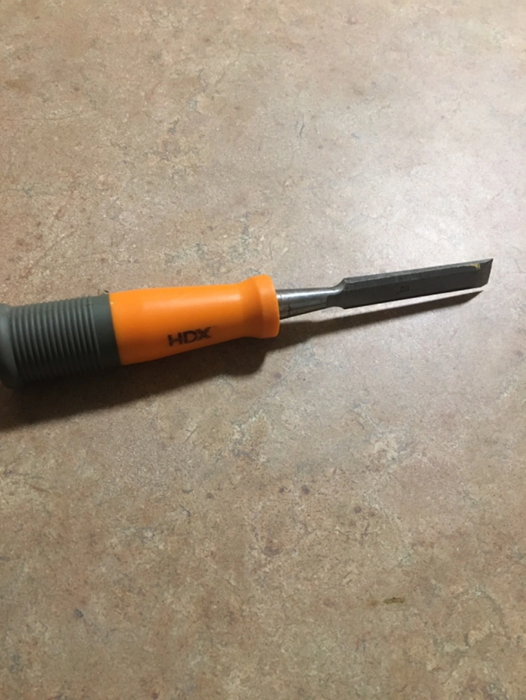 Selling an HDX wood chisel. It has an orange and grey handle. Great for woodworking projects!