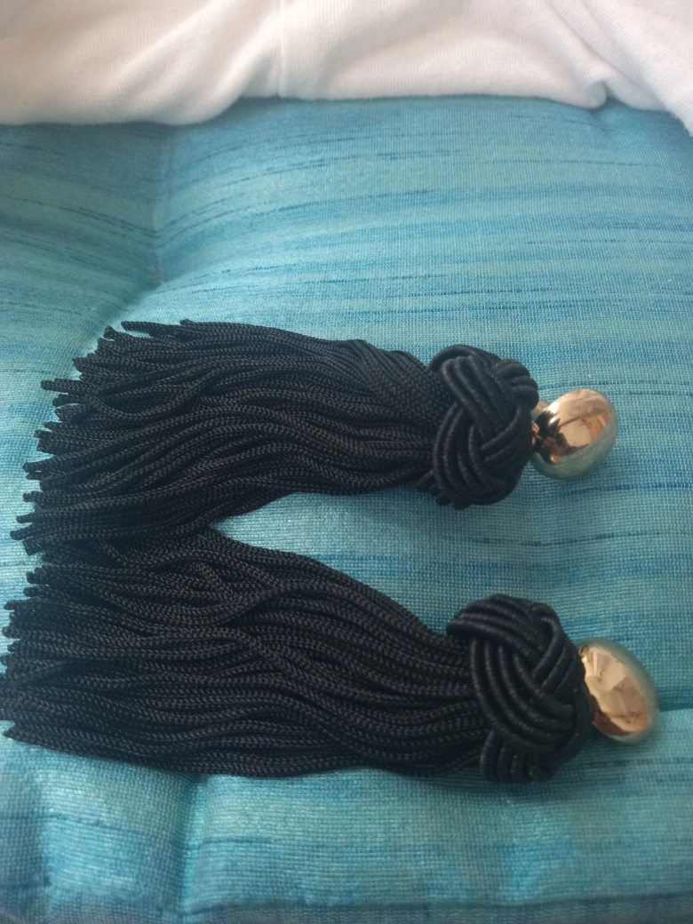 These are a pair of tassel earrings in black. They would make a great addition to any outfit!