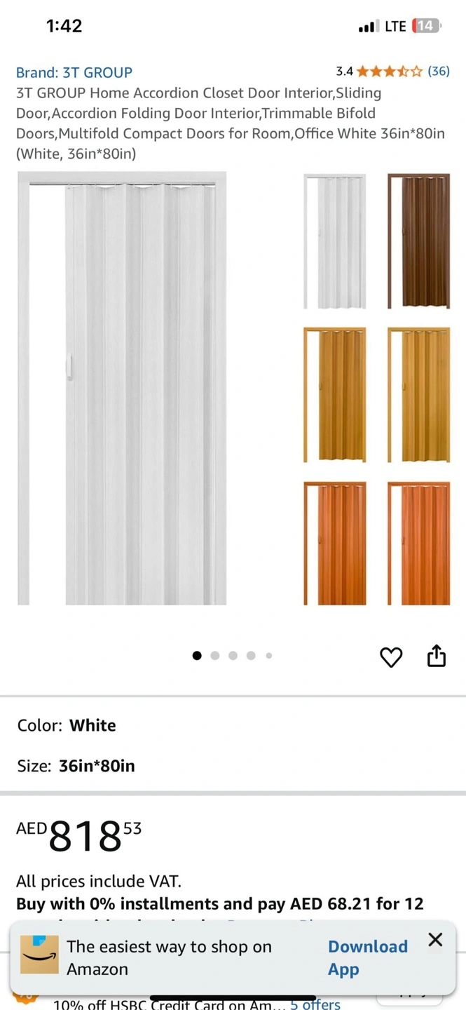 Selling a 3T Group Home Accordion Closet Door Interior. It's a sliding door, accordion folding door, trimmable bifold door, and multifold compact door. - Size: 36in x 80in - Colour: White