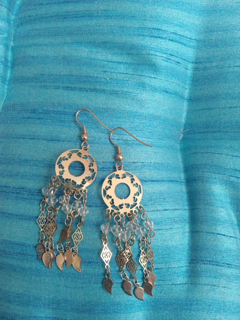 Cute dangle earrings with a circular design and beaded accents. They're in great condition and ready to add a bit of sparkle to your look!