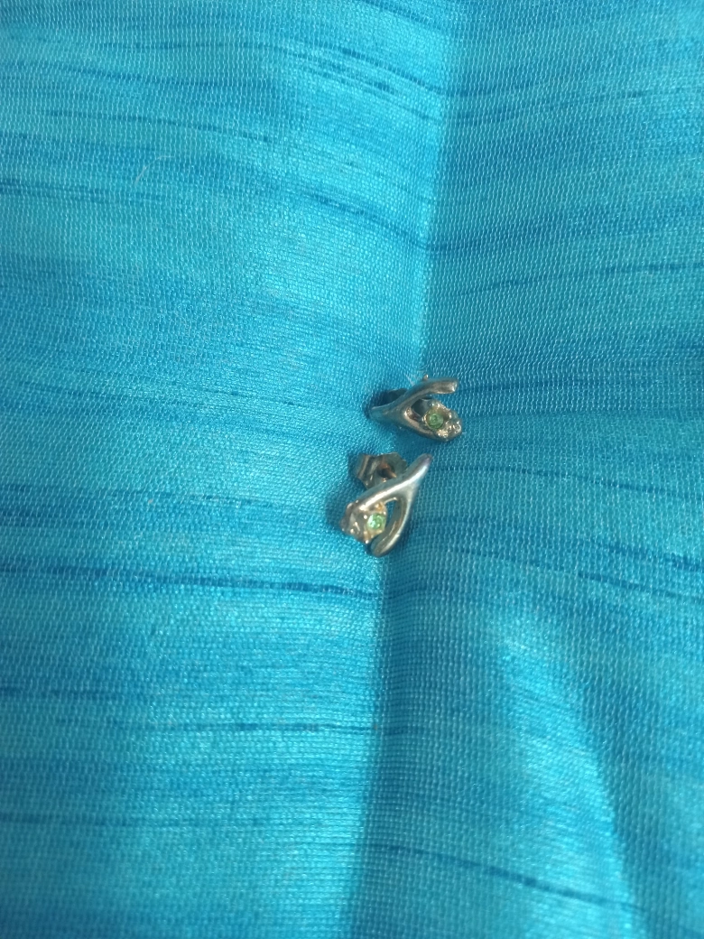 Cute pair of silver-tone wishbone earrings! Each earring has a small green stone accent. They're in great condition and ready to add a touch of charm to your style