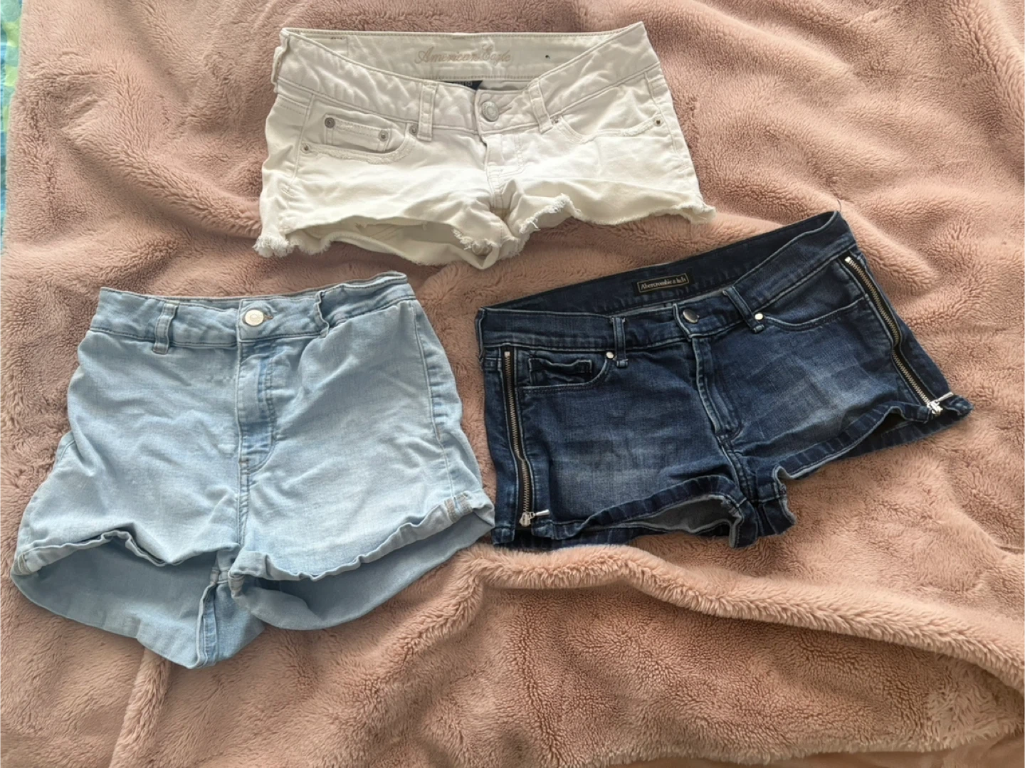 Good condition American Eagle shorts- Size 2 but they stretch H&M shorts- Size 4 Abercrombie & Fitch shorts- Size 25 They are all similar size, they all fit me perfectly, I just don’t wear anymore. I have too many shorts. $2 each Public pickup at Cooksville station or Hurontario and Dundas or Confederation and Dundas