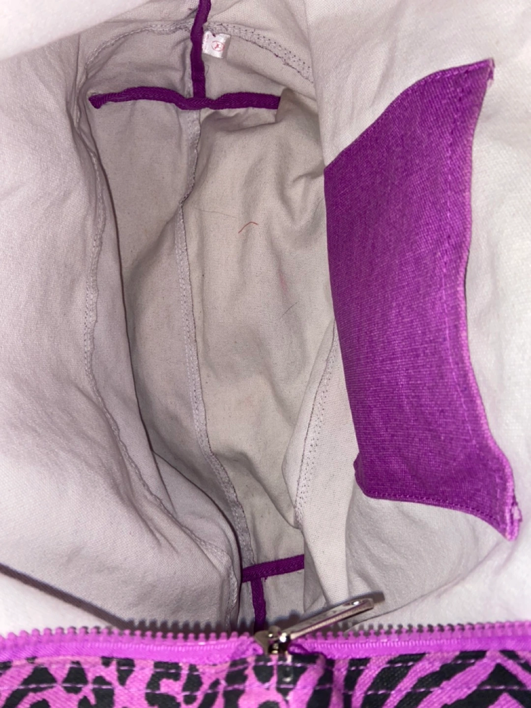 Description Condition- has been used. In fair condition. Zipper works, has a not noticeable stain inside. Colour- purple, black cheetah print Payment- Prefer Cash, only No Refunds / Exchange, No trading No holds. All purchases are Finally Sale From a smoke free home Price- $15