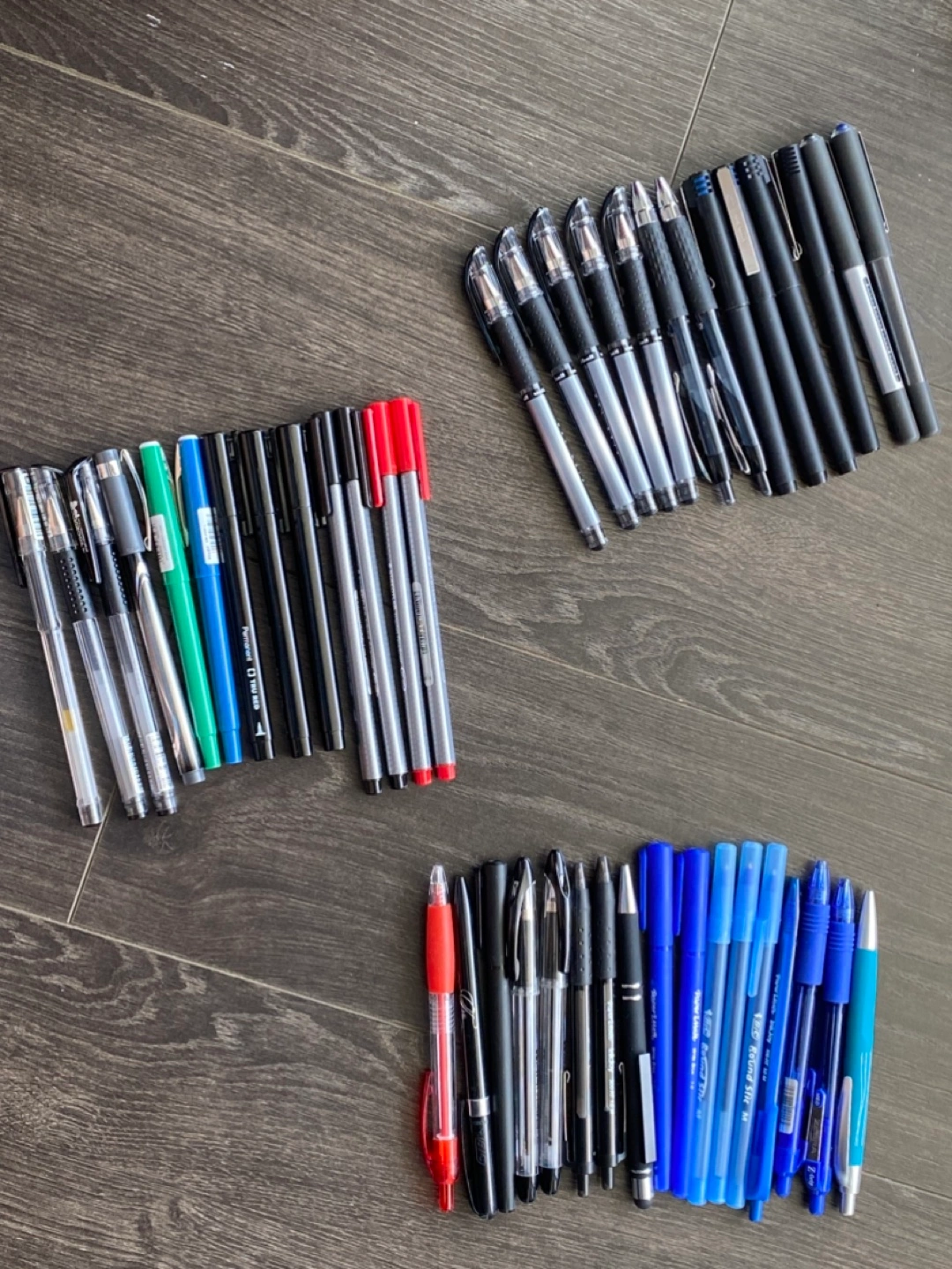 Selling a mixed lot of pens! Includes various brands and types such as ballpoint pens, fineliners, and more. Great for students, artists, or anyone who loves to write. Variety of colours and styles available. Get 3 packs of 43 mixed pens in total for $8! Message for more details!
