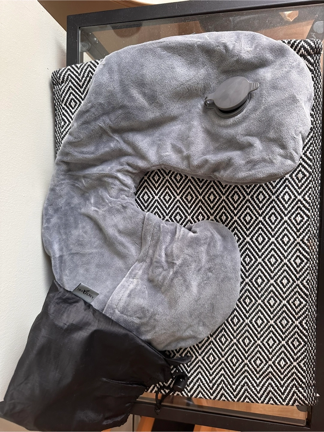 Selling a Travelsky inflatable neck pillow in great condition! It comes with a convenient carrying bag, making it perfect for travel. The pillow is easy to inflate and deflate, and it provides comfortable support for your neck. It's a soft grey colour and made of plush material, so you can relax on your trip! Pick up near Yonge and Bloor