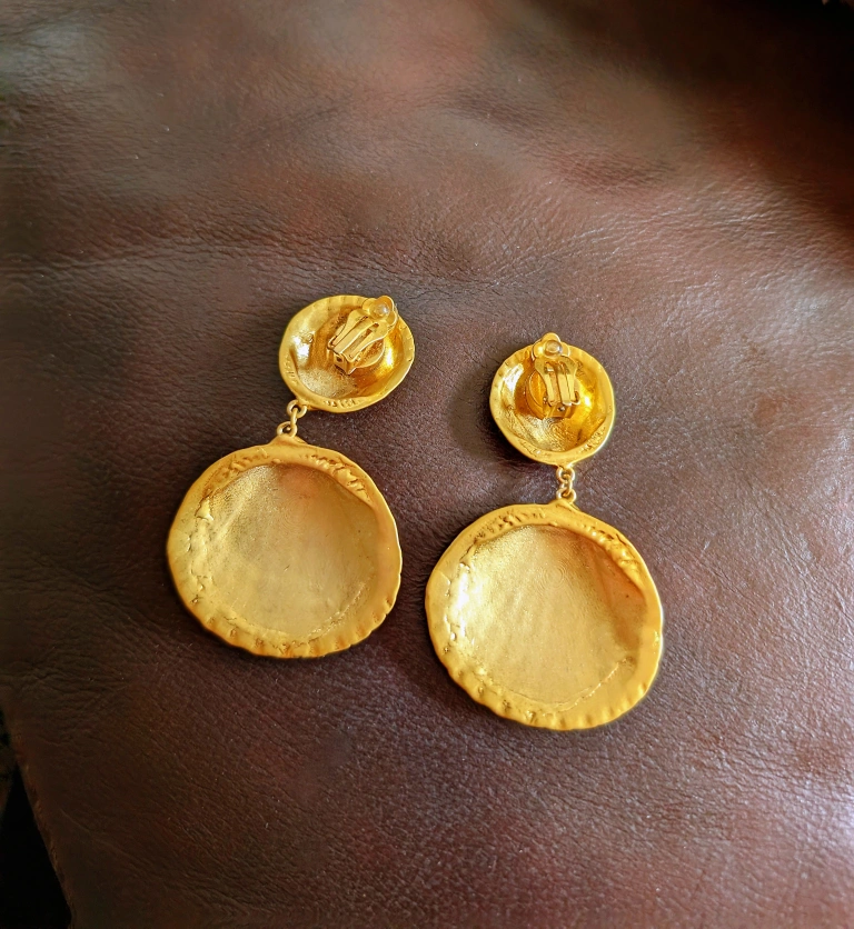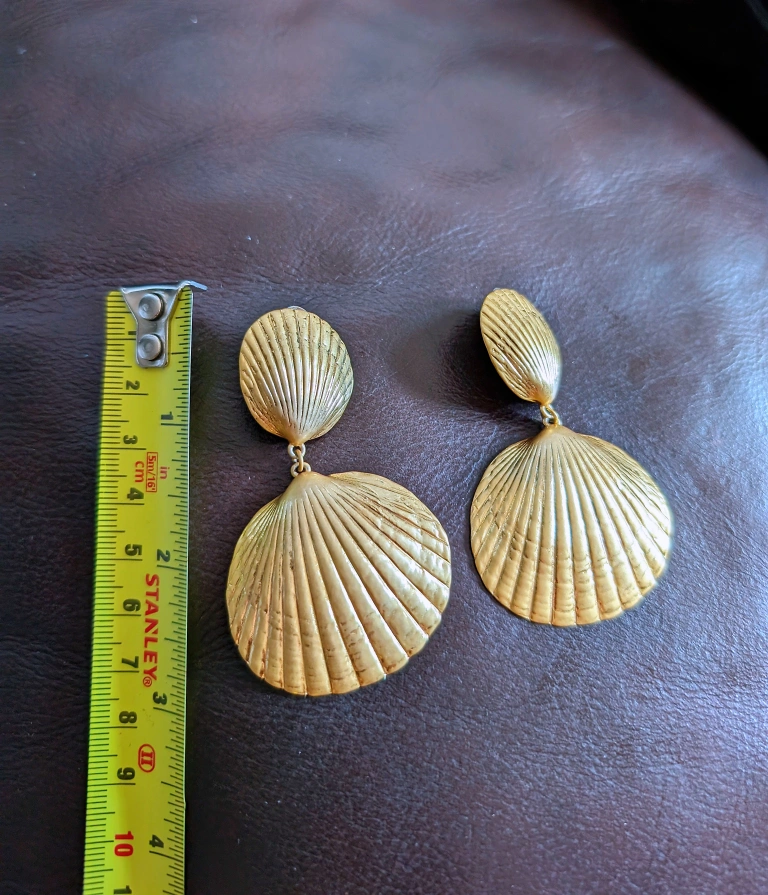 Big golden earrings without piercing. It's sturdy and gorgeous. The clips are made with some cushion and it's comfortable too. The length is less than 3 inch. $10 pickup: Beaches or downtown Toronto