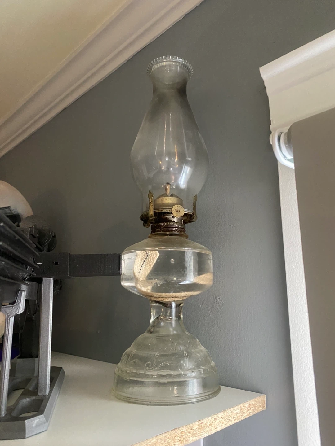 Selling a vintage glass oil lamp. It's a beautiful piece that would look great in any home. It appears to be in good condition!