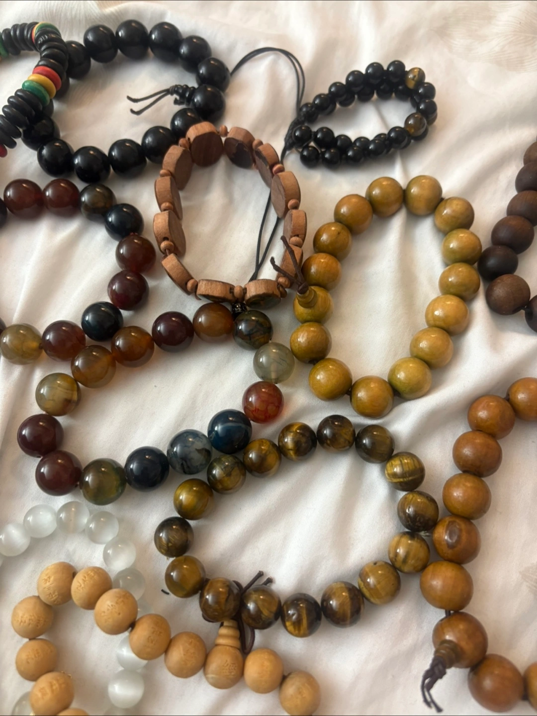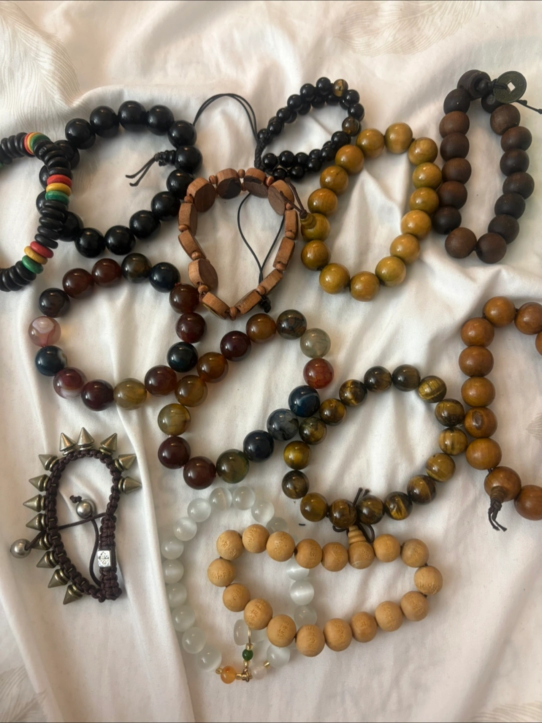 A collection of beaded bracelets in various styles and colours! Perfect for adding a unique touch to any outfit. They are in great condition and ready for a new home Around $5-8 each. Bundle all will be $35