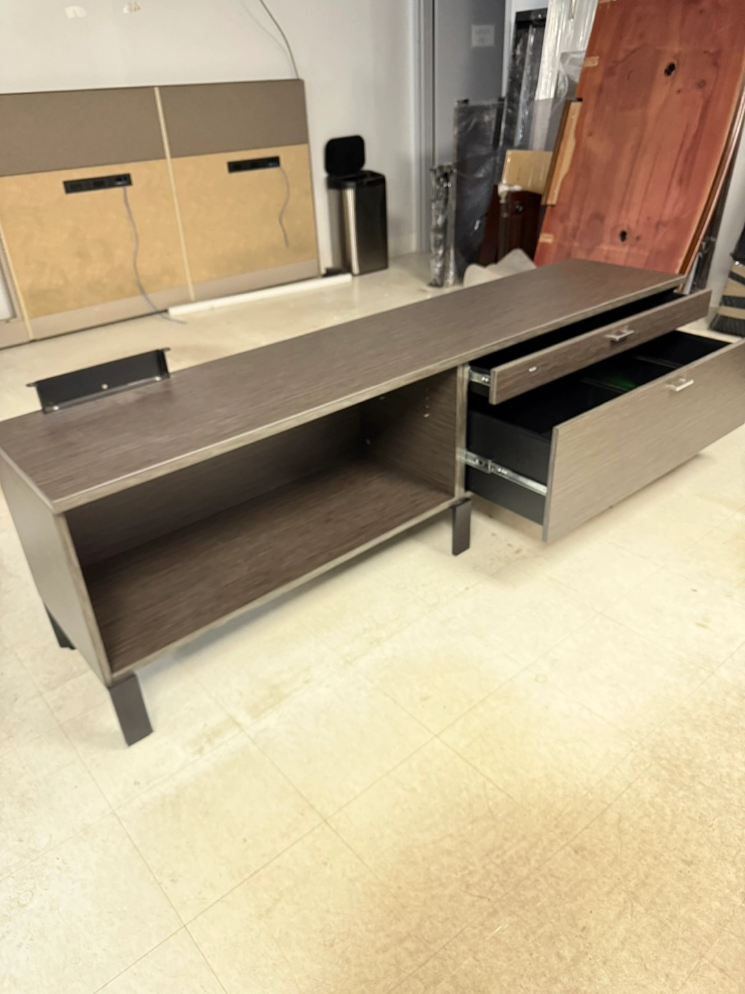 Selling a brown media console with drawers. It's perfect for storing your electronics, books, and anything else! It features a shelf and two drawers for ample storage space. Great for keeping your living room organized. Perfect for any home!