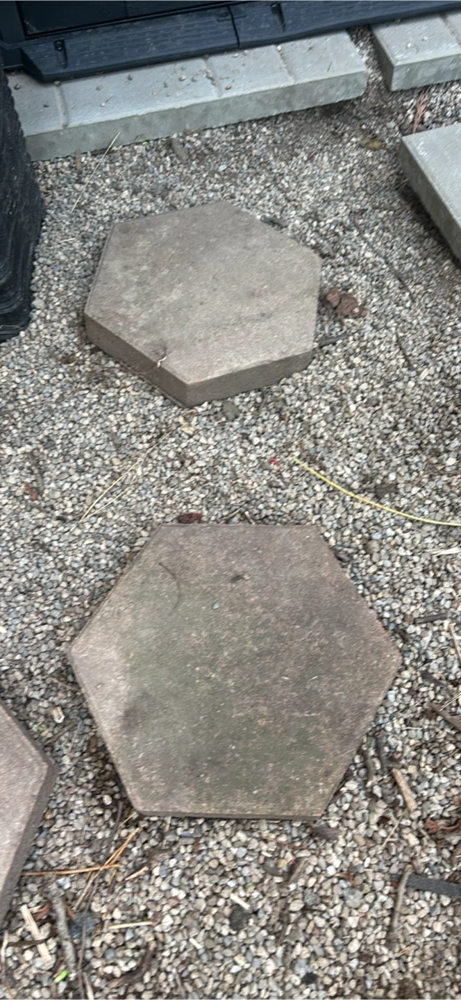 Selling some concrete hexagonal pavers. They're a great way to add some visual interest to your garden or patio. They are in used condition. 15 of them.