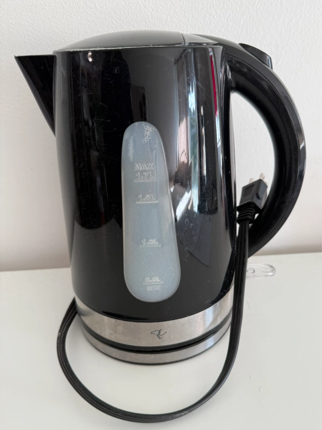 Selling a black electric kettle with a capacity of up to 1.7L. Perfect for quickly boiling water for tea, coffee, or other hot beverages!