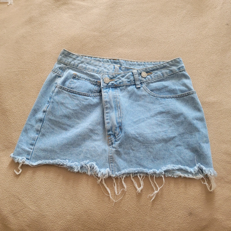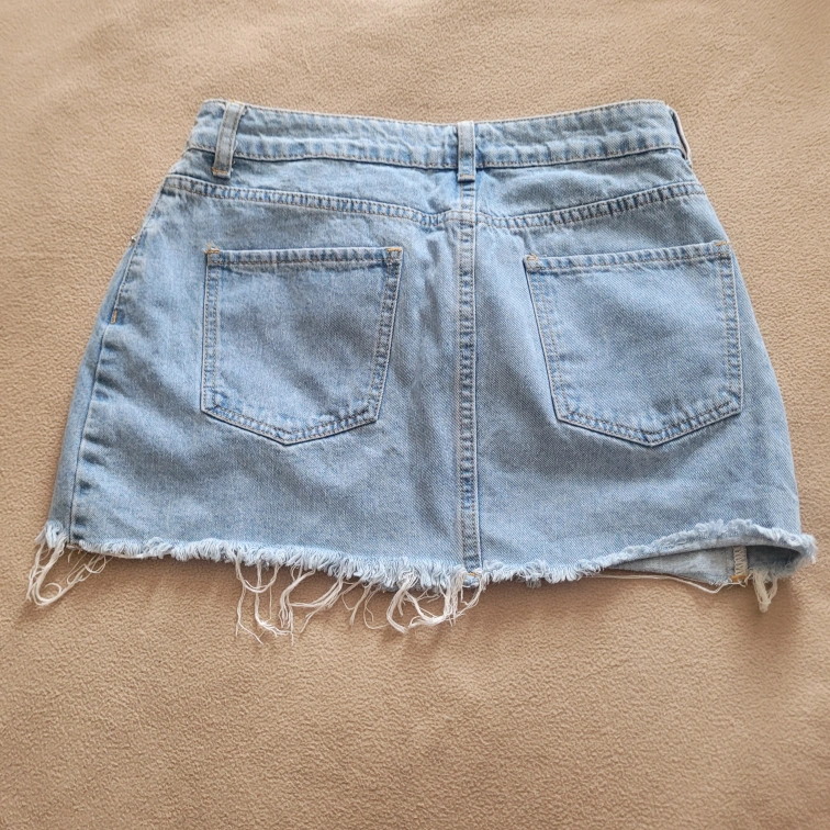 Selling a cute light blue denim skirt! The waist measures approximately 13.78 inches or 35 cm. It's in great condition and ready for a new home!