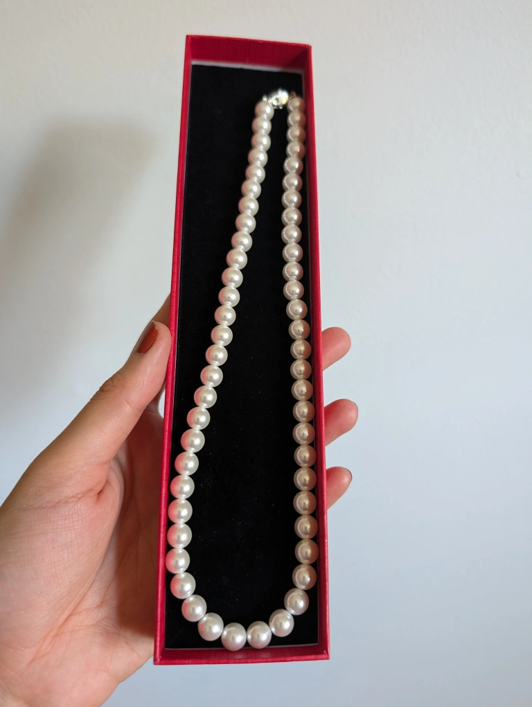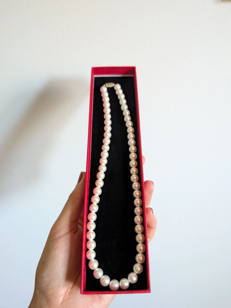 an imitation Pearl necklace with a gift box length: 18 inches totally new $15 Pickup: Beaches or downtown Toronto