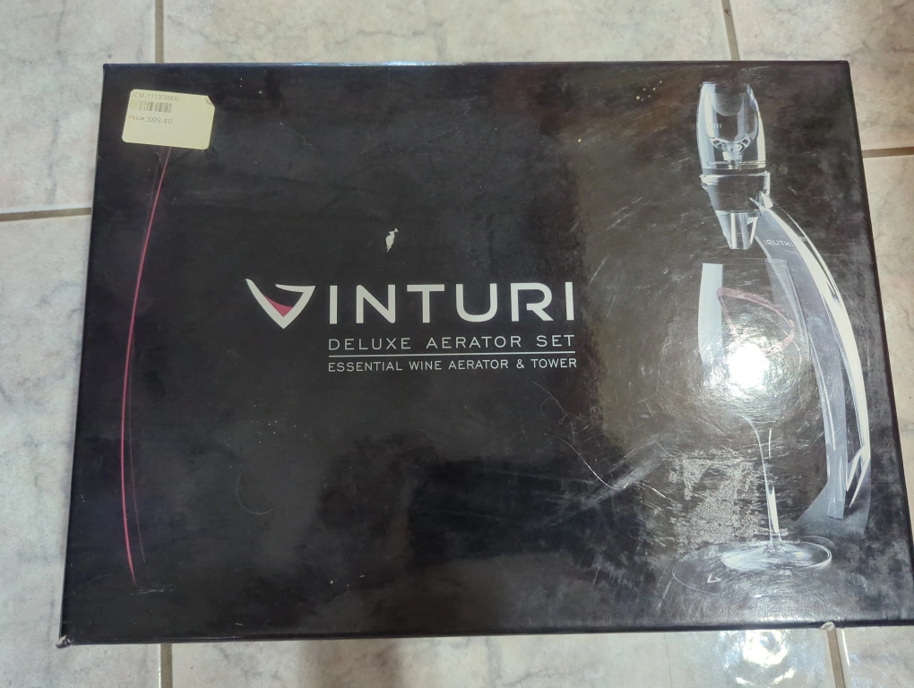 Selling a Vinturi Deluxe Aerator Set! a wedding present that we didn't need (we have a similar one) This essential wine aerator and tower comes with the box. never used. Perfect for enhancing your wine experience!