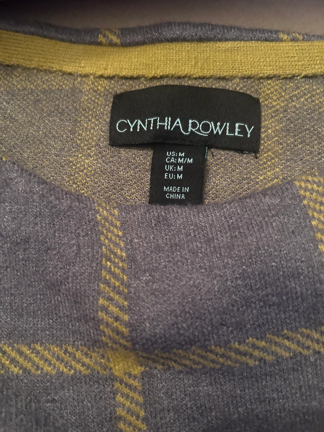 Cozy Cynthia Rowley sweater in a lovely plaid pattern! It's a size medium and made of a blend of materials: - 34% nylon - 26% wool - 20% polyester - 20% rayon Perfect for staying warm and stylish!
