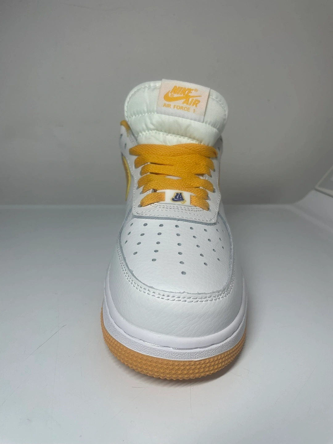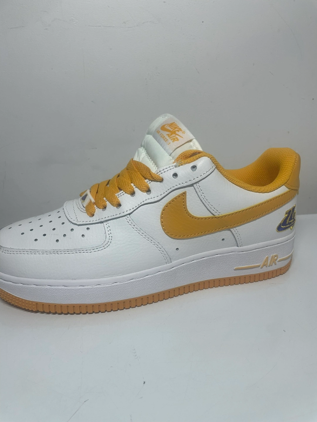 Selling a pair of Nike Air Force 1 '07 sneakers in white and gold. These classic shoes are in great condition and ready for a new home. The iconic design and comfortable fit make them a perfect addition to any wardrobe. Don't miss out on these stylish kicks!