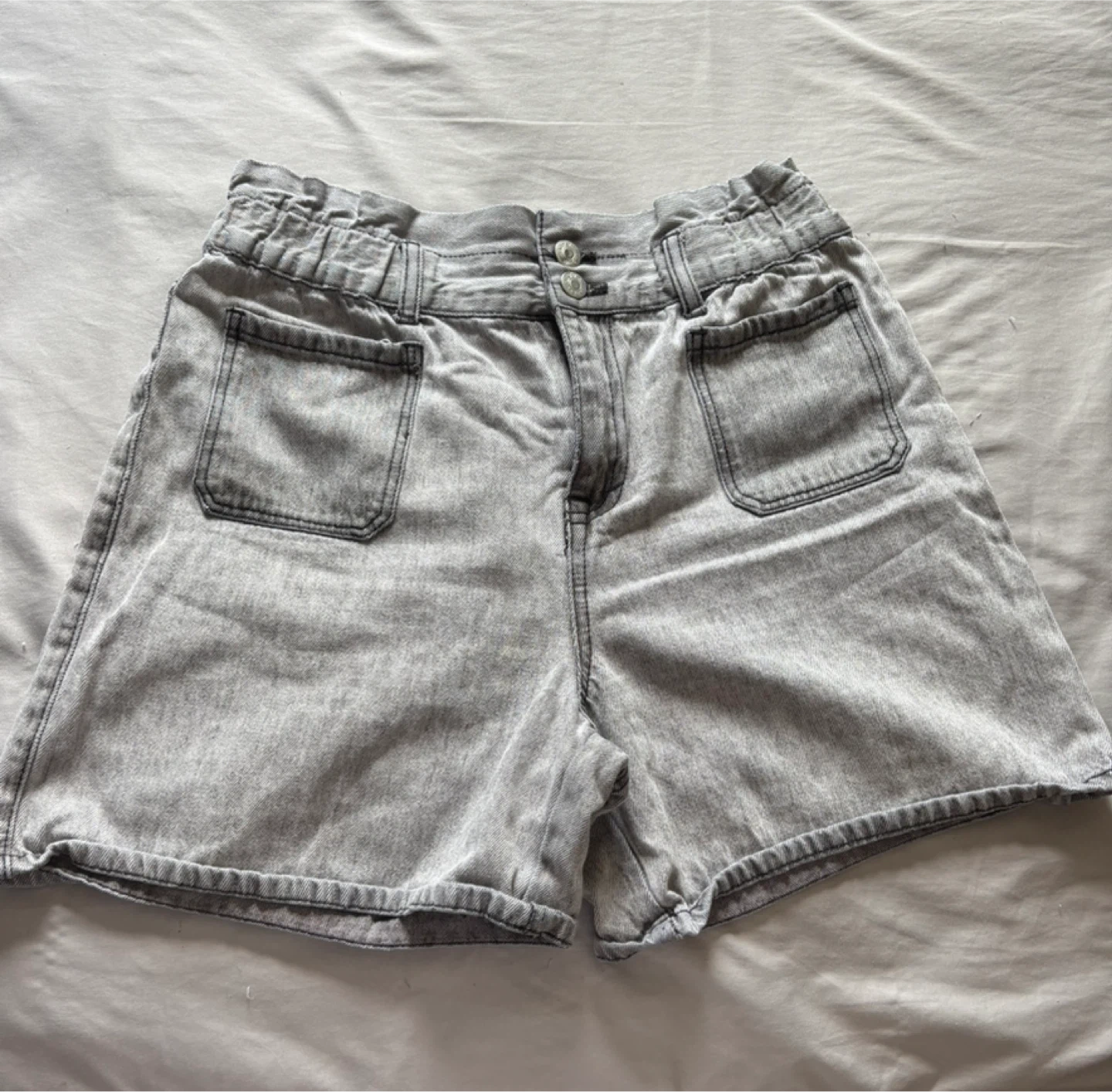 Here are some grey denim shorts! They're in great condition and ready for a new home. They have a comfortable fit and a classic look that can be dressed up or down. Perfect for everyday wear!