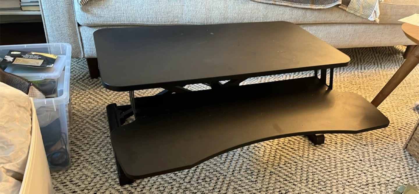 Selling a VIVO 81cm desk converter in black! It's a K Series, height adjustable sit to stand riser, perfect for a dual monitor and laptop workstation. The desk has a wide keyboard tray. Measurements: - Desktop: 31.5" x 15.7" - Tray: 31.3" x 11.8" - Height adjustable from 4.5" to 20" - Base: 30" x 16" It holds dual monitors up to 24" per screen, or a laptop and monitor. It also has low profile C-clamp or Grommet mounts. Excellent condition. Very stable, well built, sturdy. Pick up only near Bloor and Spadina. Retails for $200. $80 or make an offer.