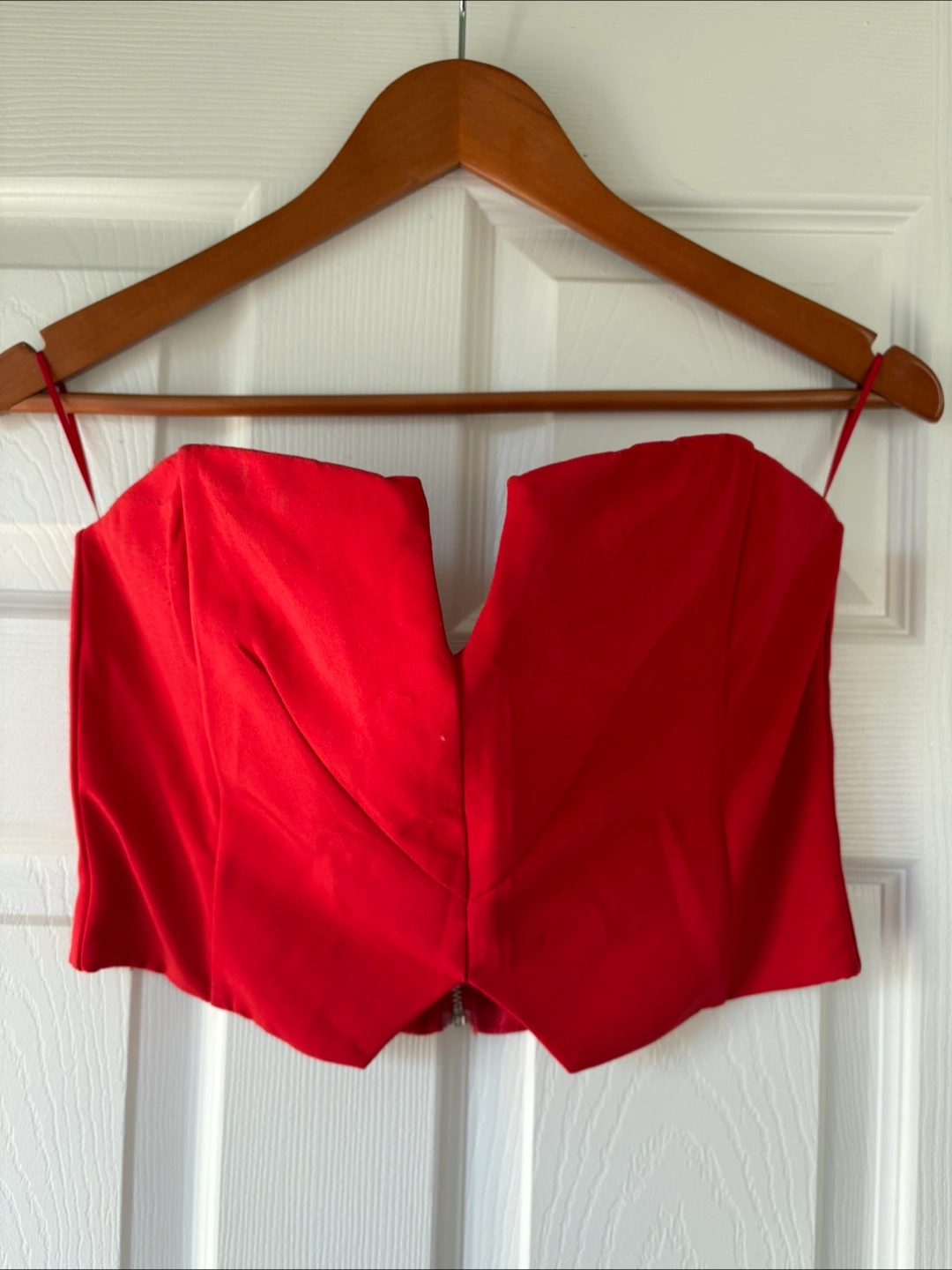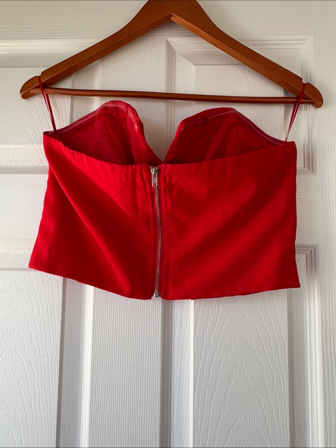 Selling a vibrant red corset top from Runaway! It's in great condition and is a size 12/L. Perfect for adding a pop of colour to your wardrobe!