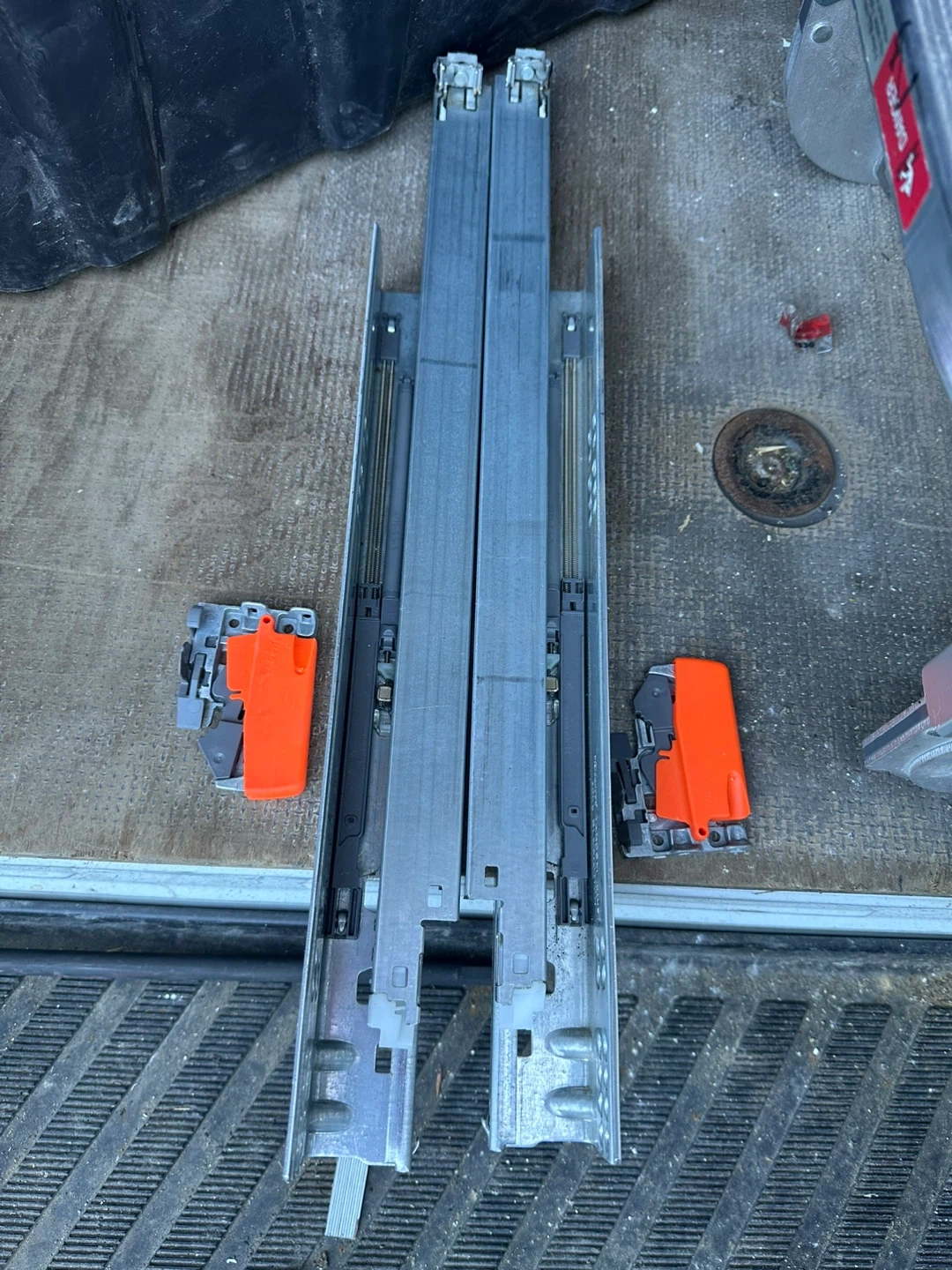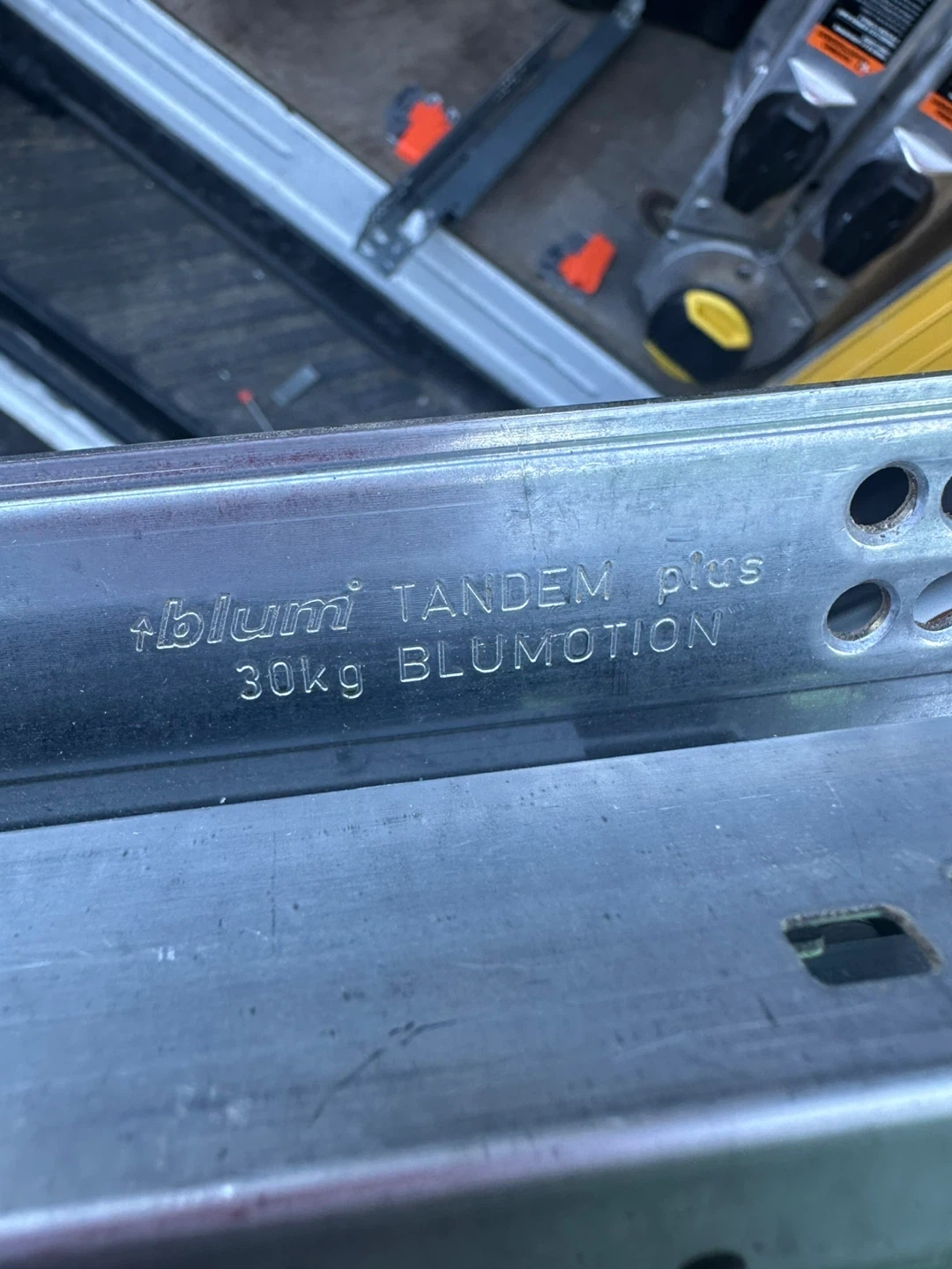 Selling a set of Blum Tandem Plus Blumotion drawer slides. These are rated for 30kg and feature the smooth Blumotion soft-close mechanism. They are marked "Made in Austria" and have the model number R 560H500-01B. I have 18 for 9 drawers. $30 per pair Pay by cash please.