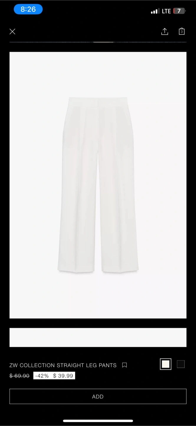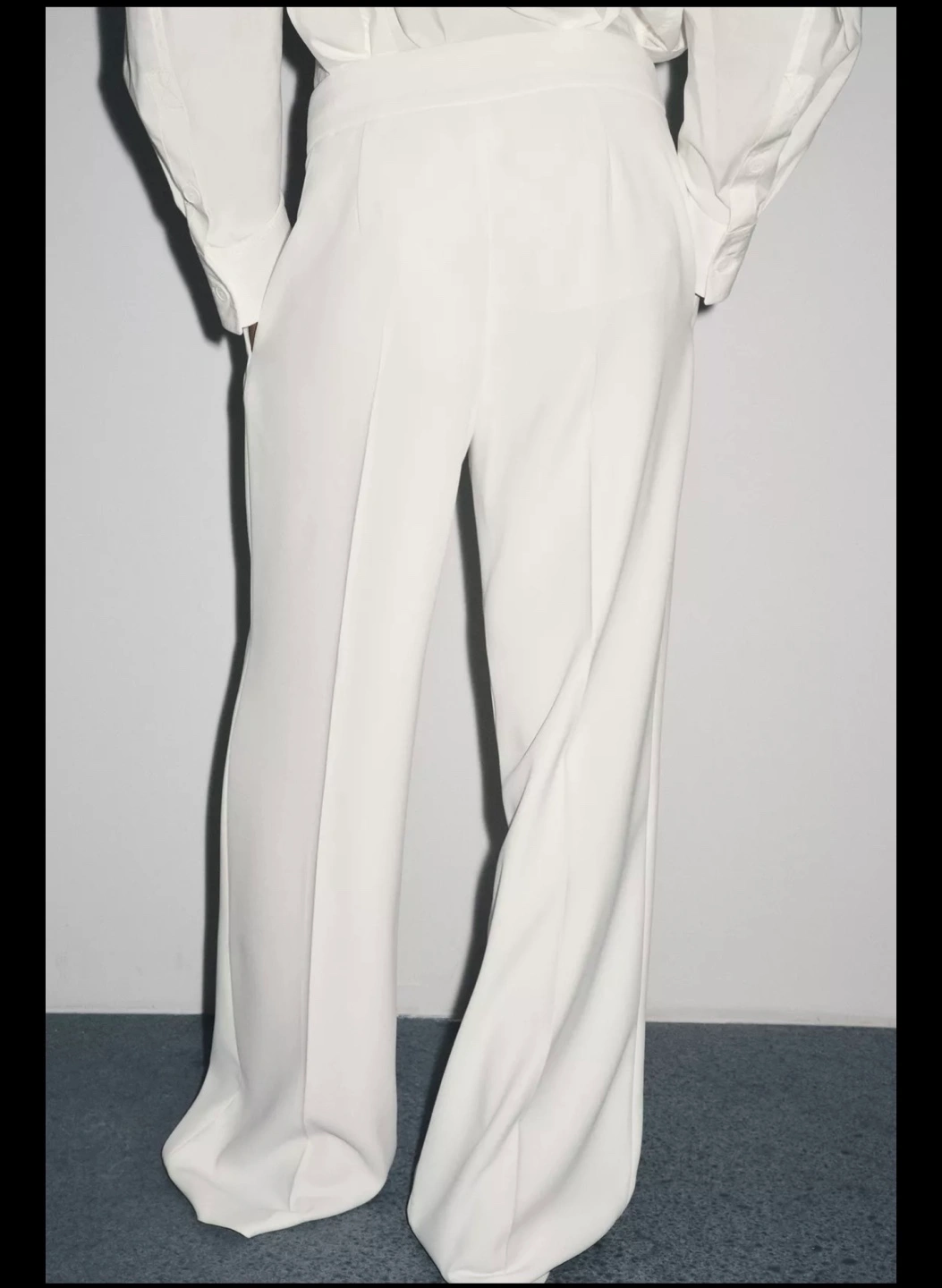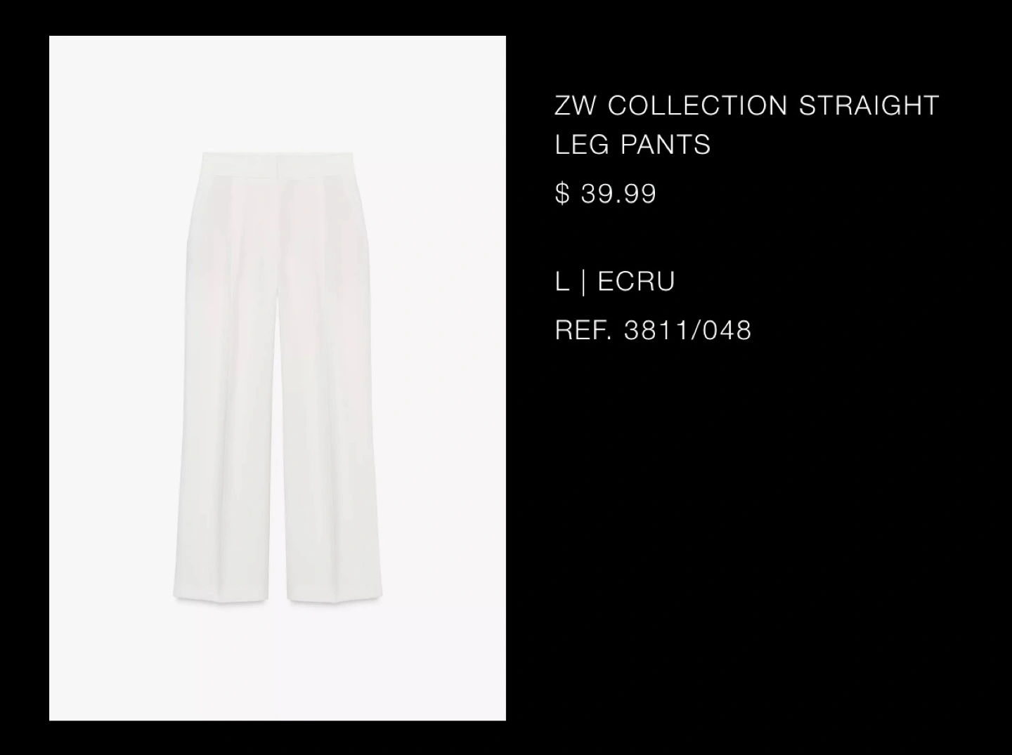 These are a pair of Zara wide leg trousers in white. They look so elegant and are perfect for a chic, minimalist look! Size L Brand new without tag. Bought recently, but changed my mind, no longer needed. Can’t return since no tags. Never worn. Also have these in black