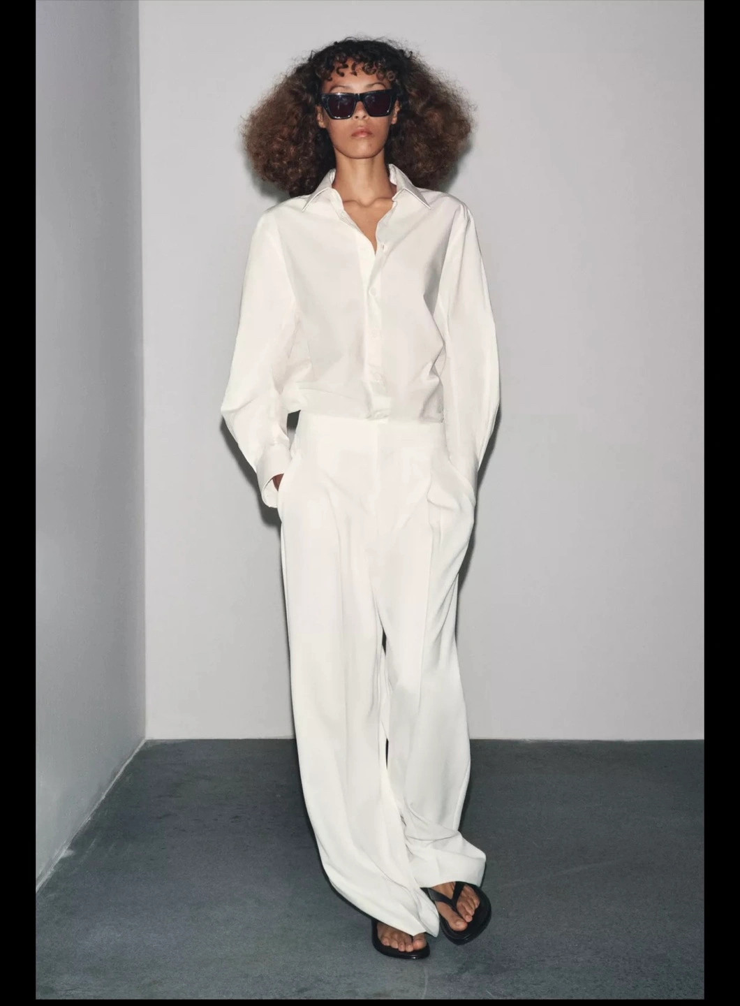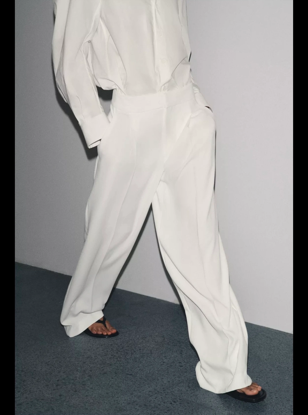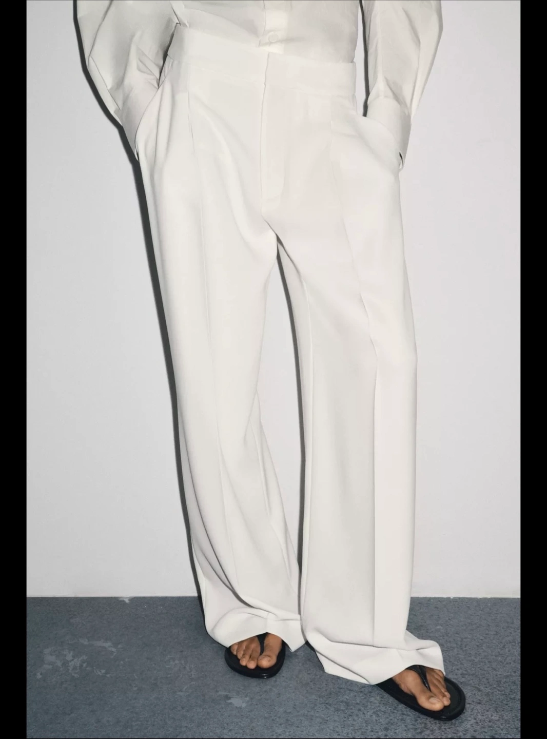 These are a pair of Zara wide leg trousers in white. They look so elegant and are perfect for a chic, minimalist look! Size L Brand new without tag. Bought recently, but changed my mind, no longer needed. Can’t return since no tags. Never worn. Also have these in black