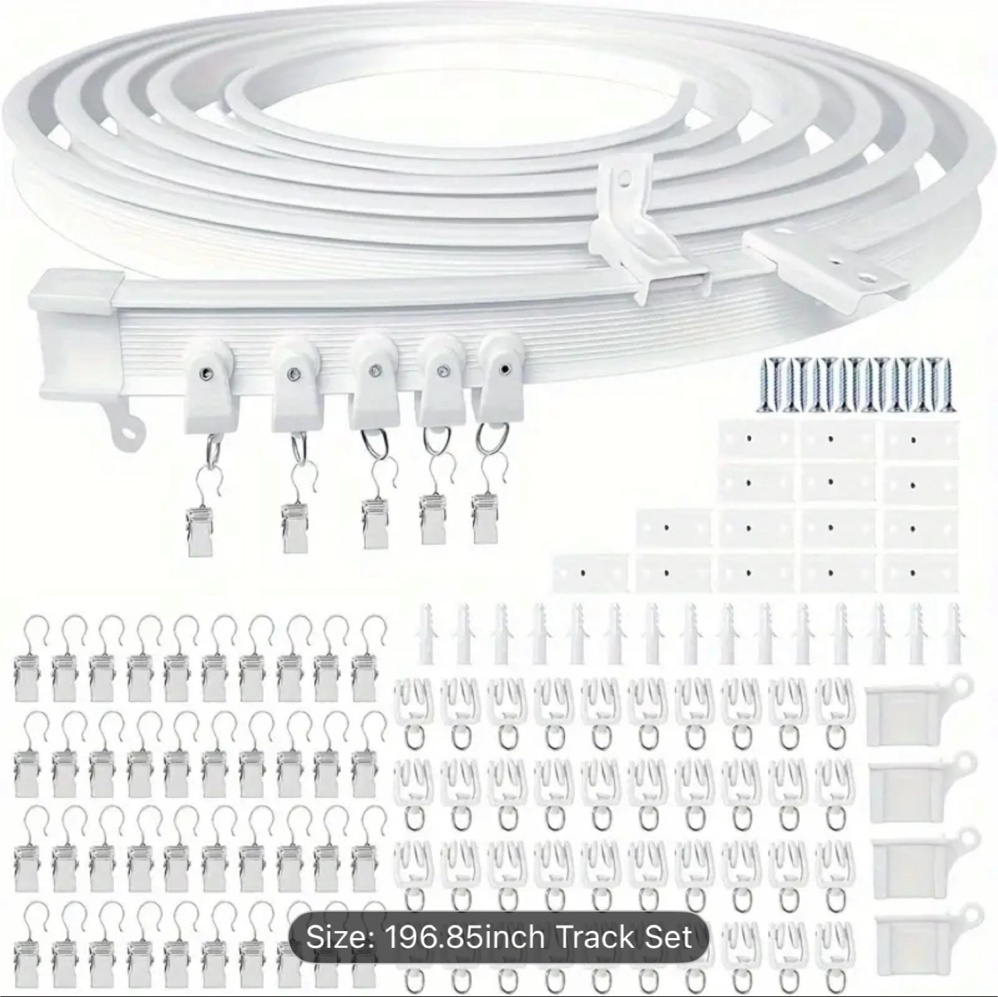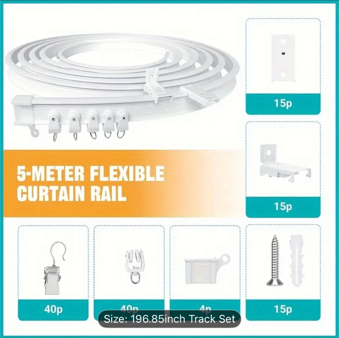 Selling a flexible curtain rail track set in white, measuring 196.85 inches. It's a 5-meter flexible curtain rail, and the package includes all necessary components for installation. Perfect for creating a custom curtain setup in your home!