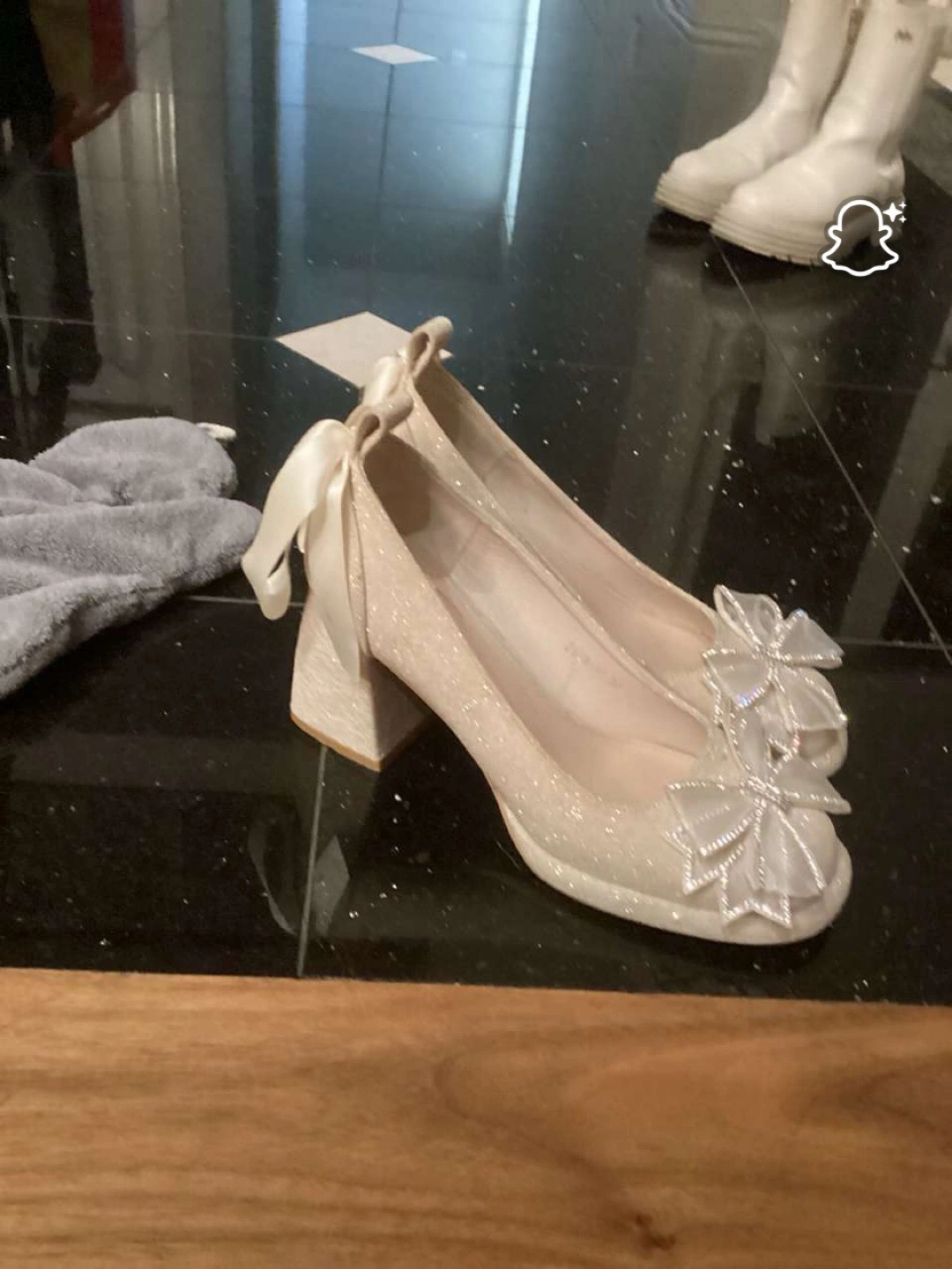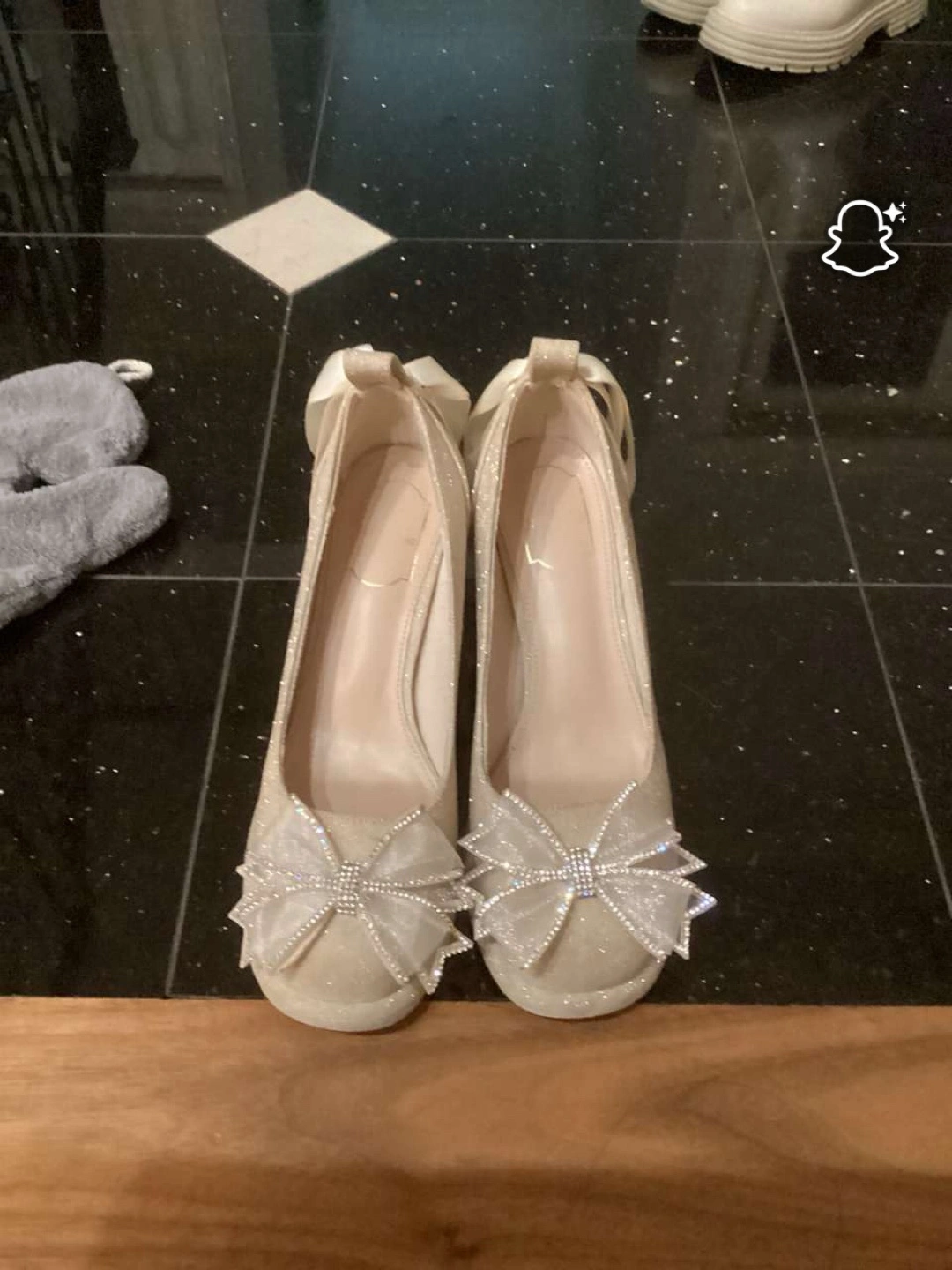 These sparkly heels are super cute! They have a lovely bow detail. Perfect for a special occasion or just to add a bit of sparkle to your day