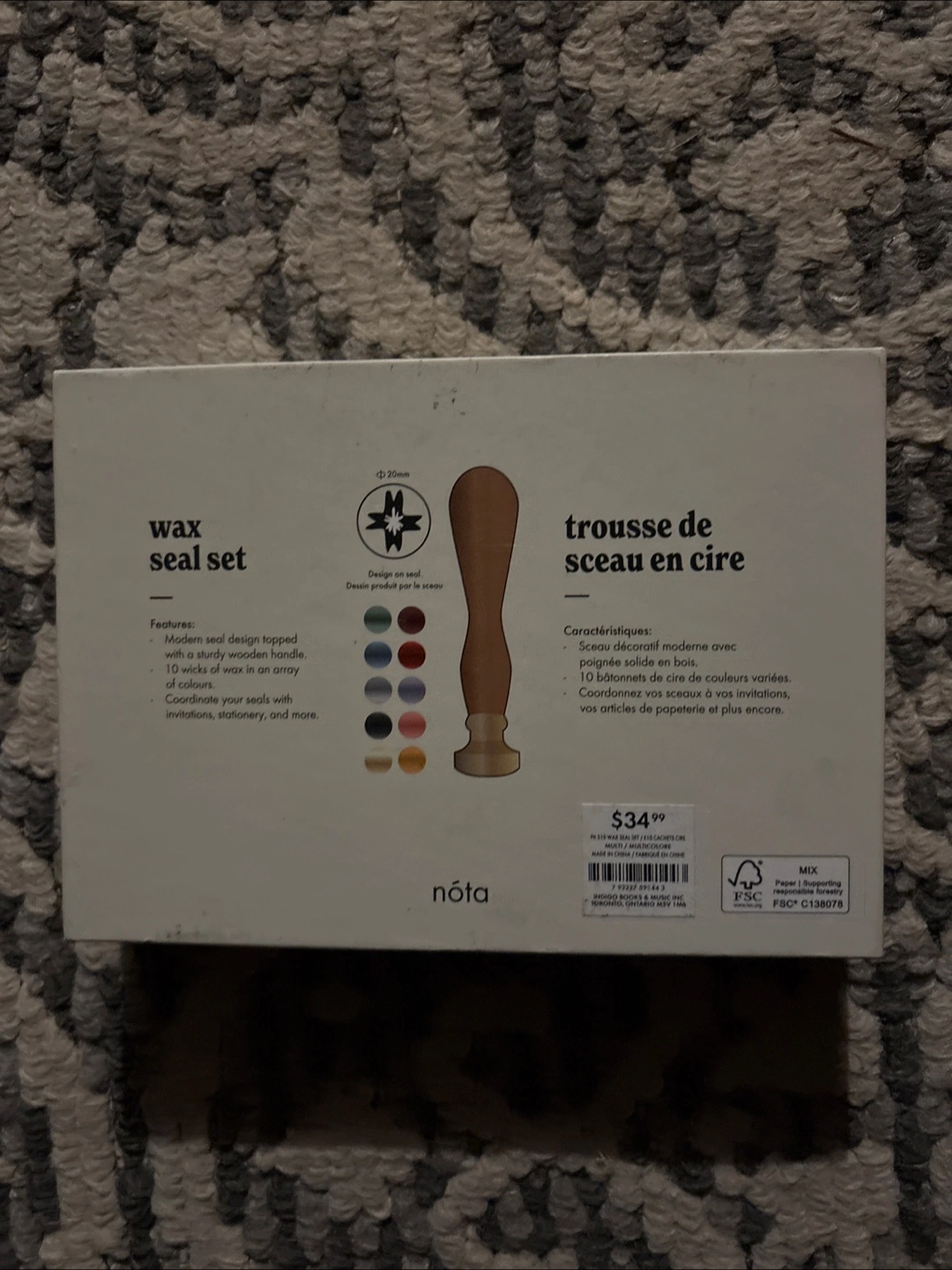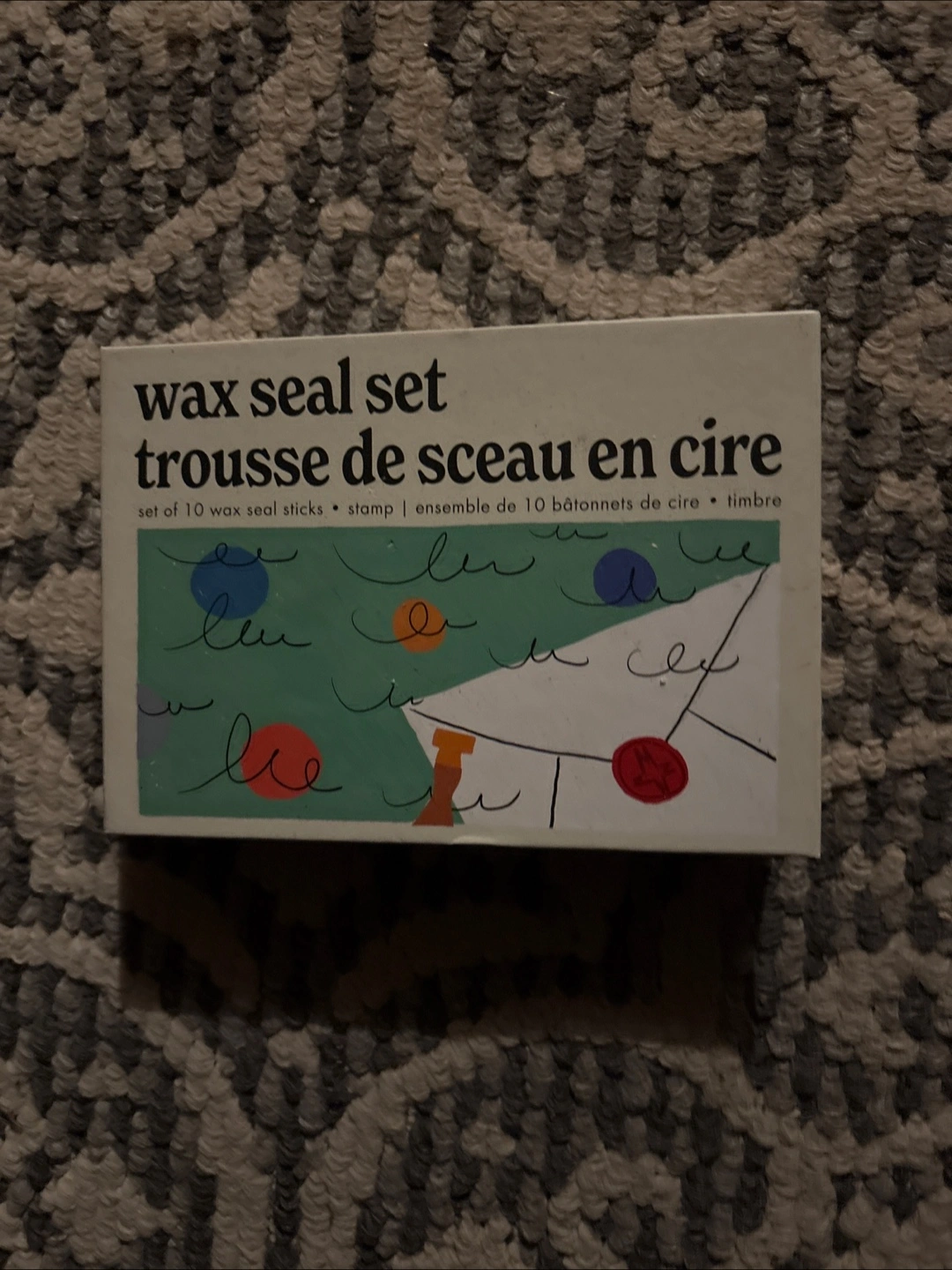 Selling a wax seal set, also known as a trousse de sceau en cire! It includes a set of 10 wax seal sticks and a stamp