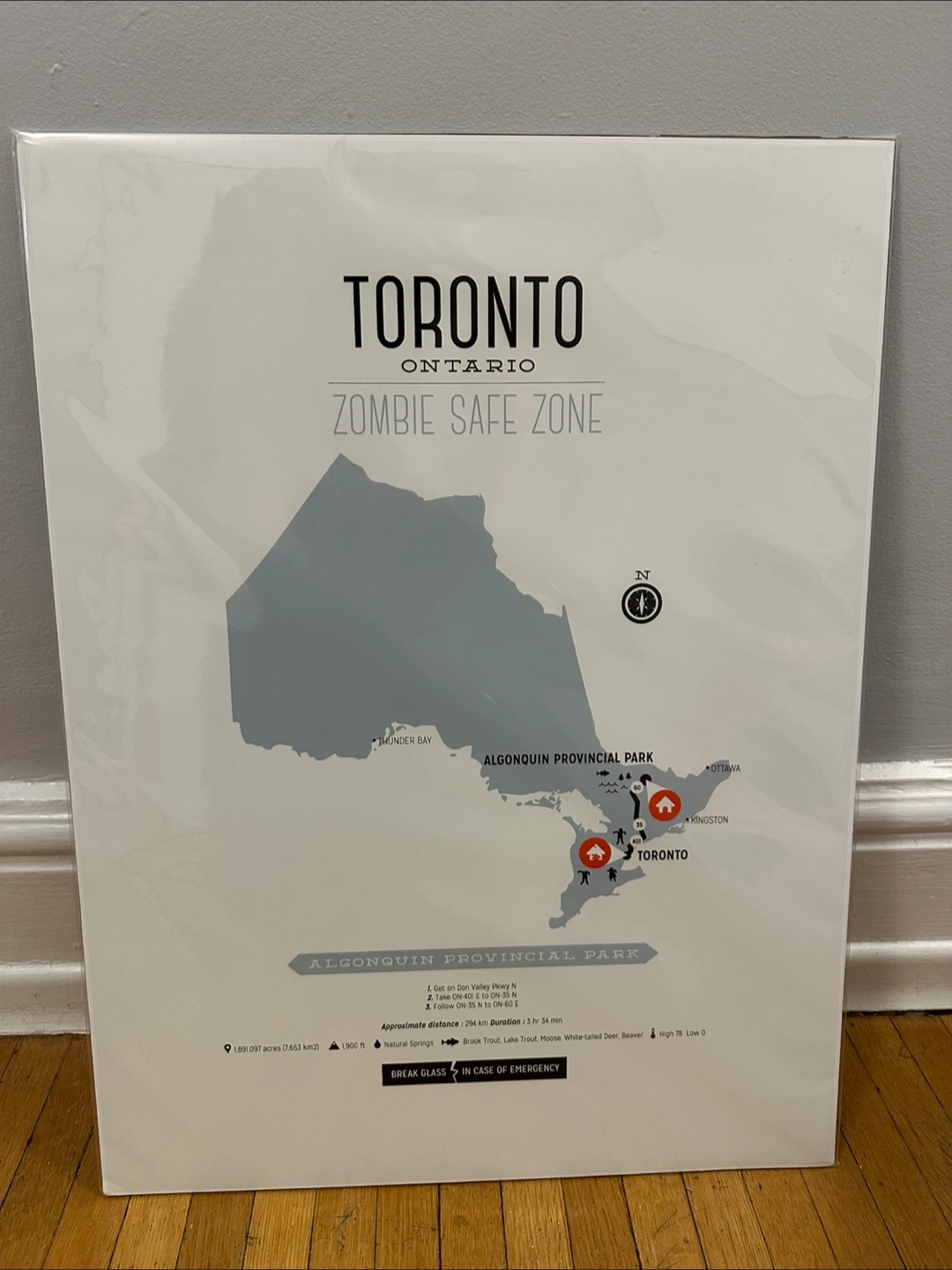 Selling a Toronto Ontario Zombie Safe Zone poster, unframed, in excellent condition. From a non-smoking home. Size is 24 (h) x 18 (w). If the ad is up, the item is available.