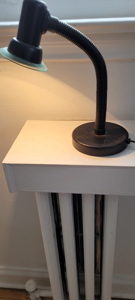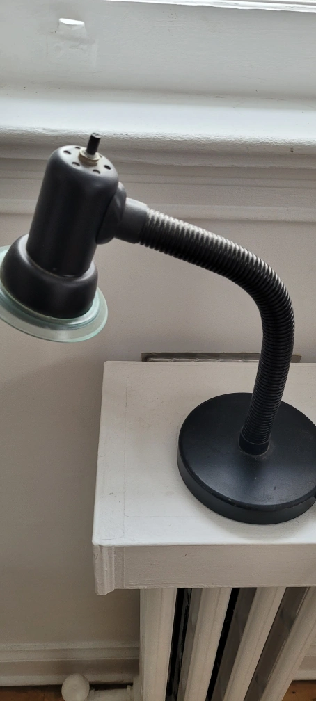 Selling a black flexible adjustable gooseneck desk lamp. It's in good condition and perfect for a desk or bedside table. Provides focused light where you need it!
