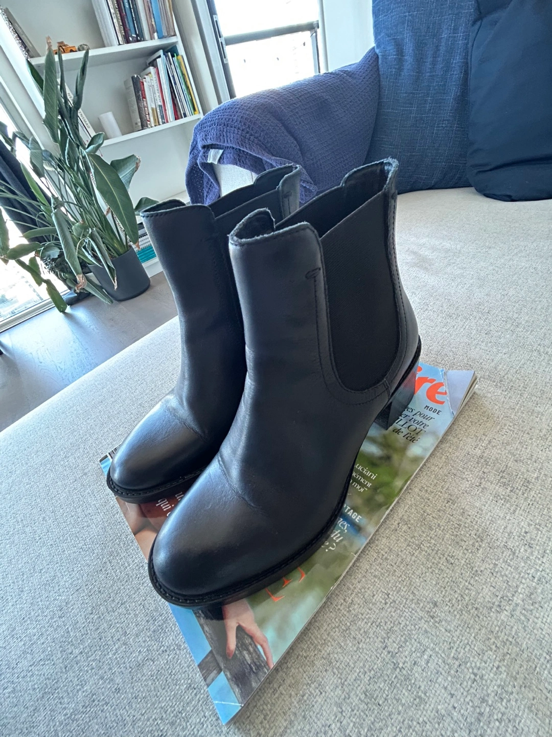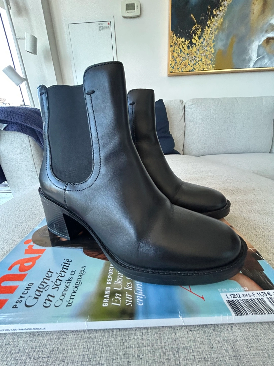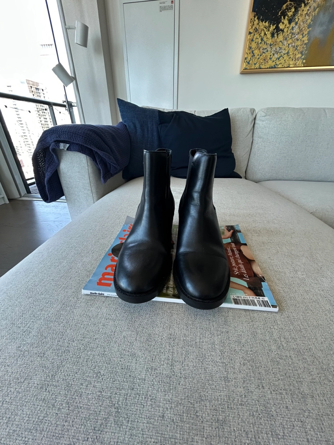 Geox classic black leather Chelsea boots. Bought last year November and barely used. The classic style makes them super versatile for any outfit, whether you're dressing up or keeping it casual.