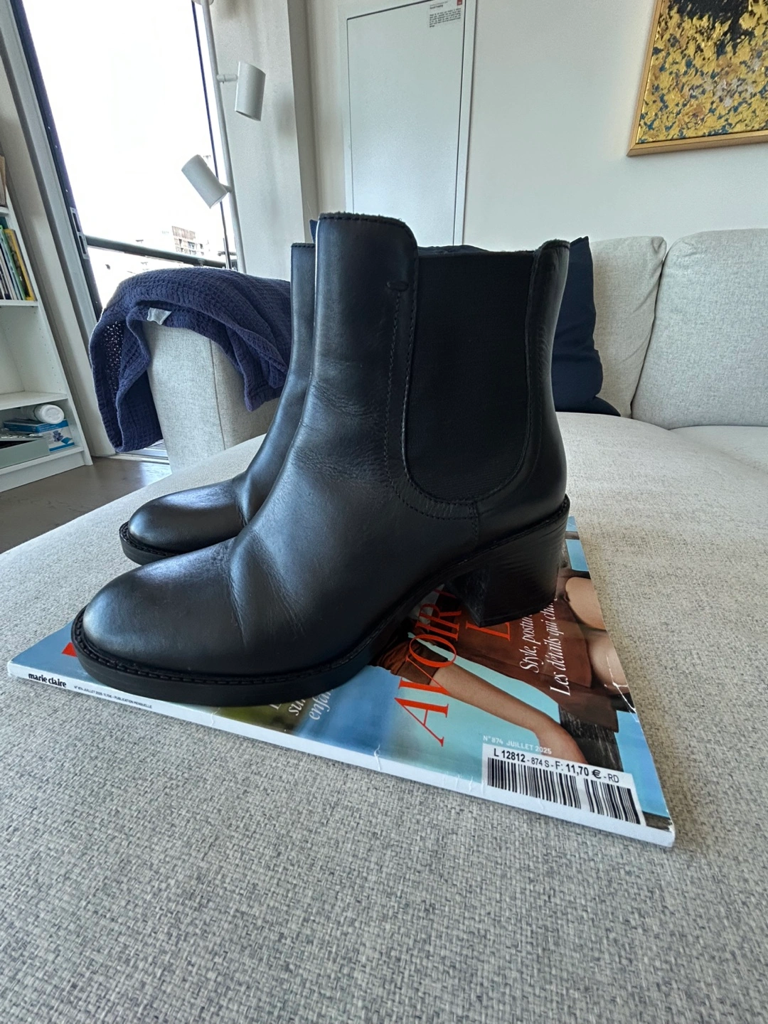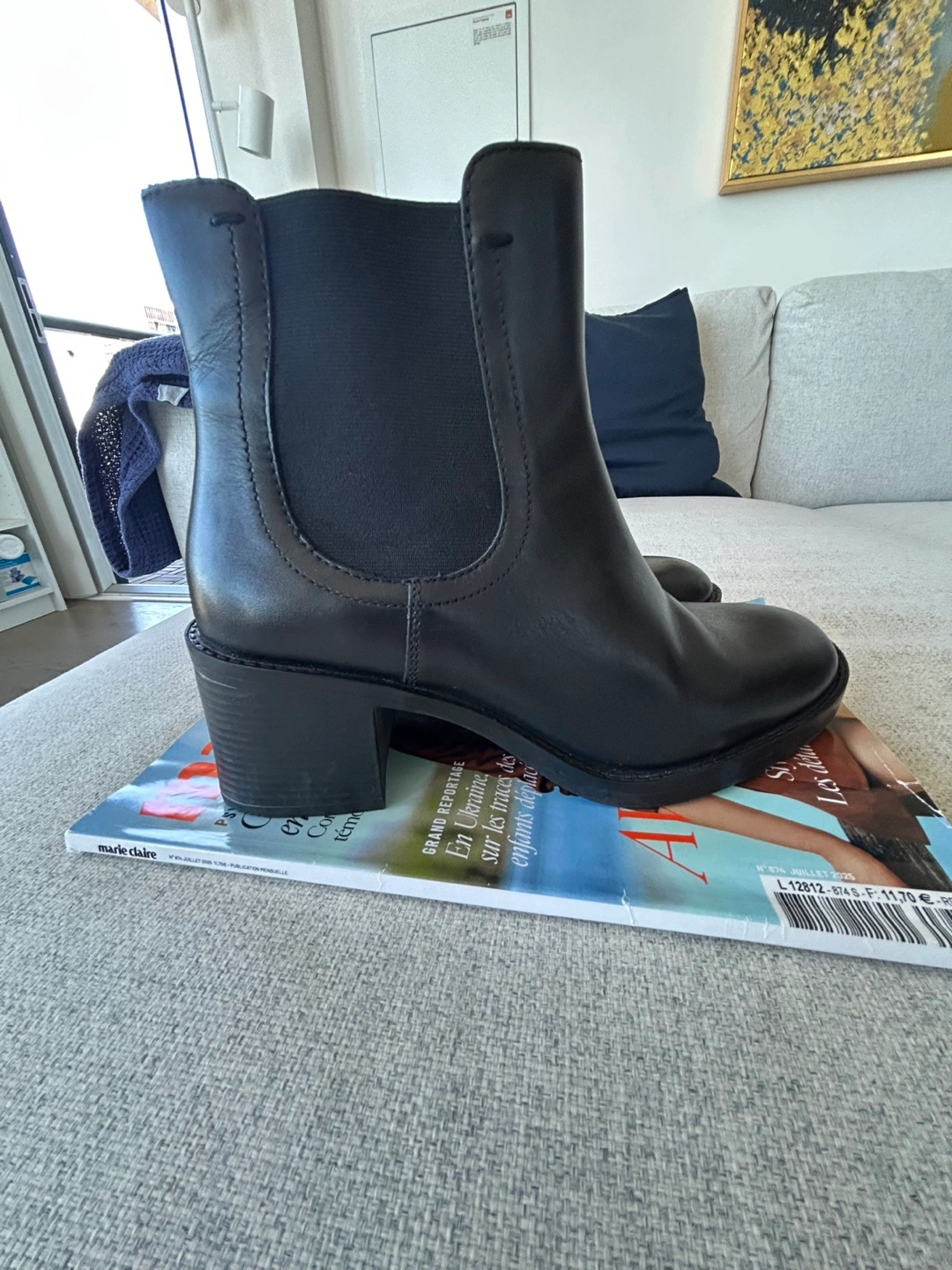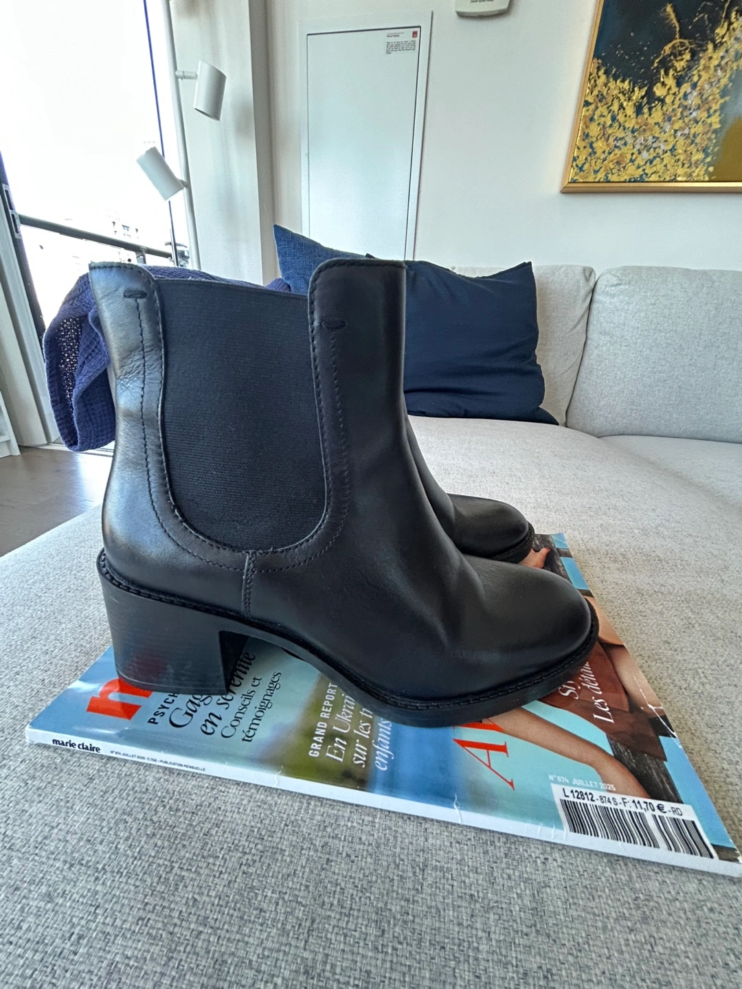 Geox classic black leather Chelsea boots. Bought last year November and barely used. The classic style makes them super versatile for any outfit, whether you're dressing up or keeping it casual.