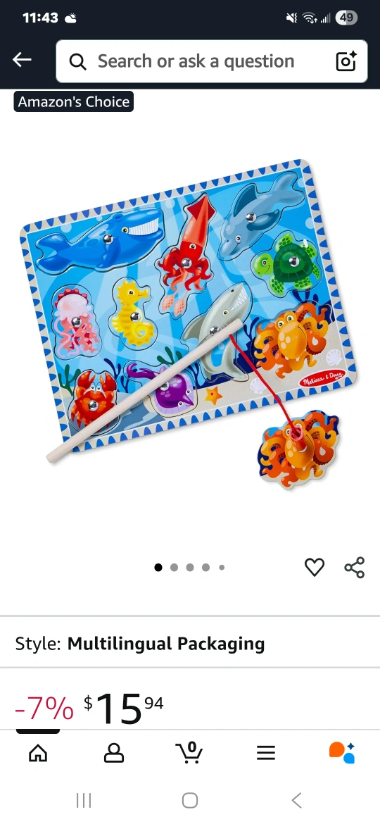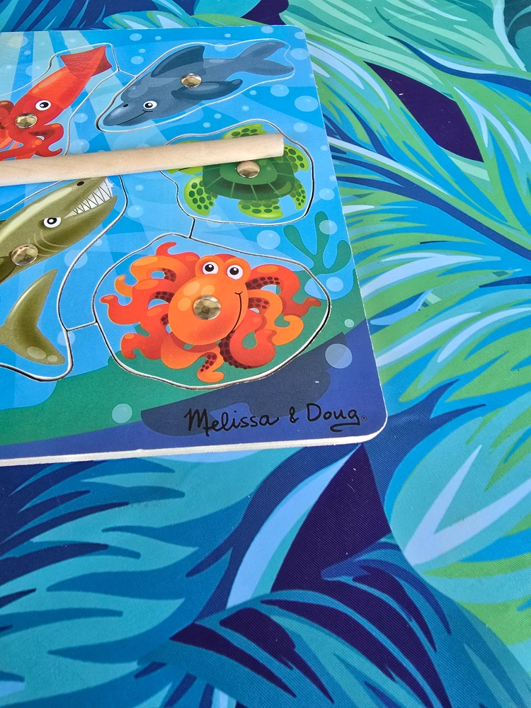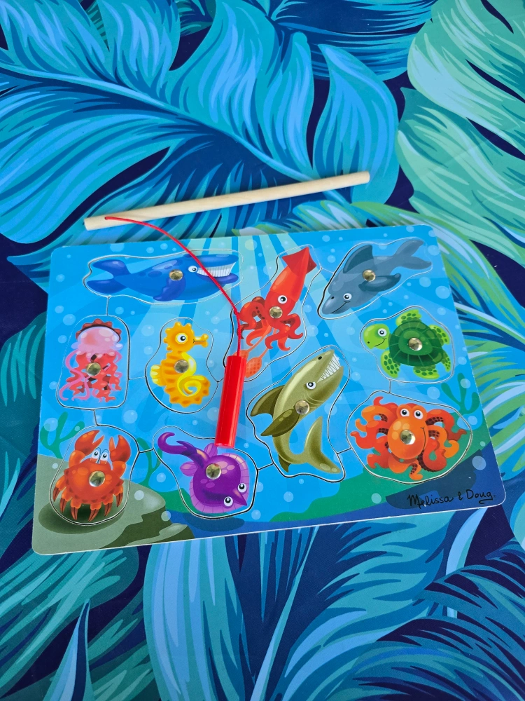 Pick up in North York Keele St and Wilson Ave area Gently used Magnetic ▶️ Multi Family Account / Cash only AI: This Melissa & Doug wooden puzzle is perfect for little ones who love the ocean! It features colourful sea creatures and a magnetic fishing rod to 'catch' them, making it a fun and educational toy. Recommended for ages 3+