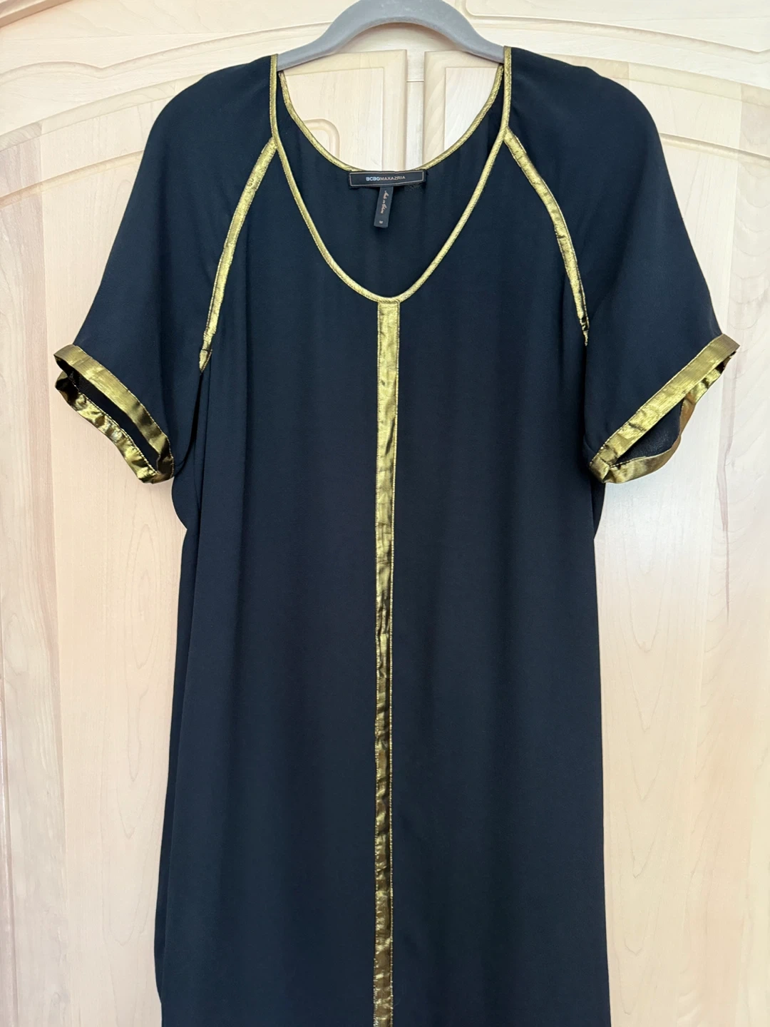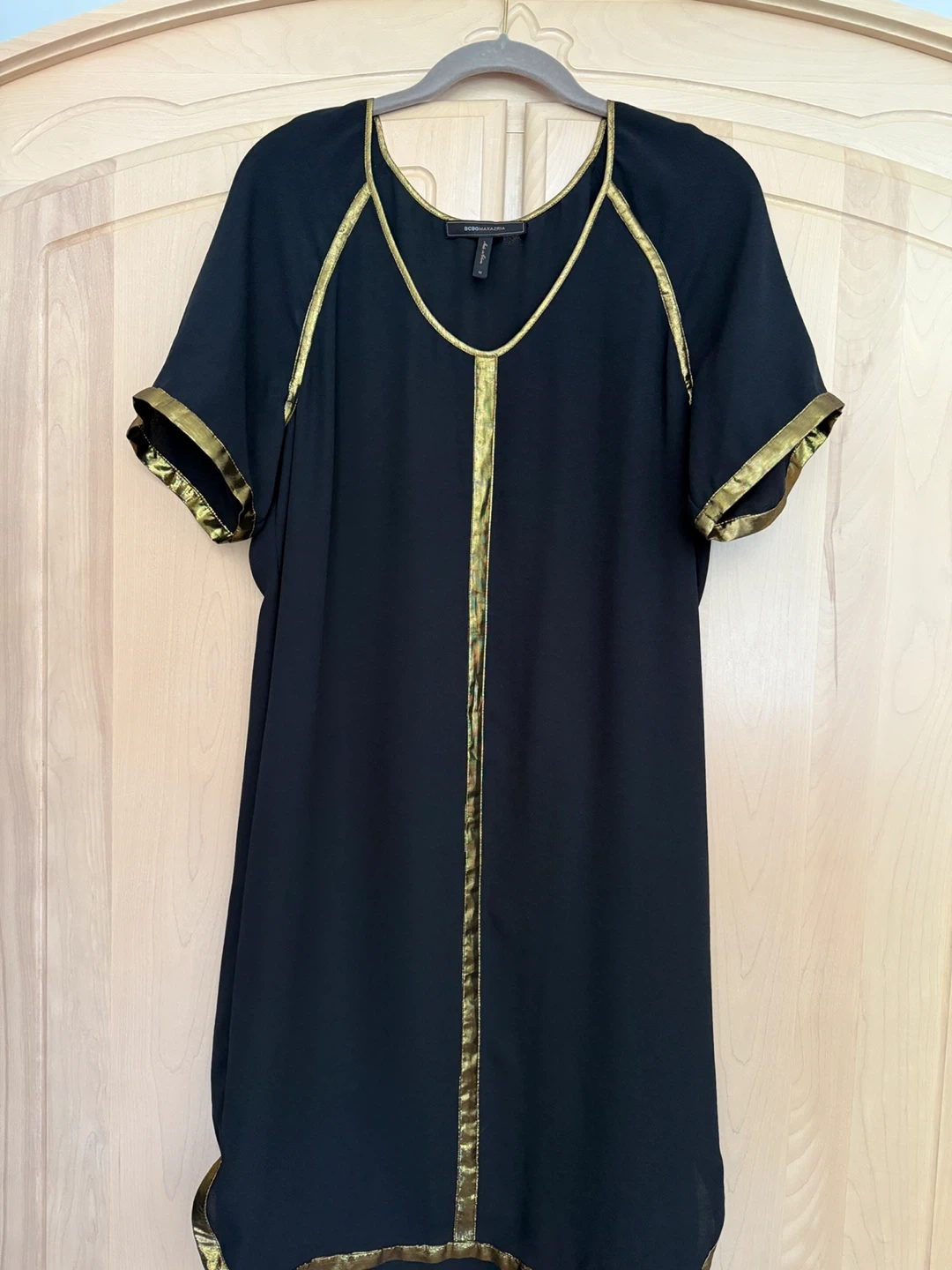 Selling a stylish BCBG Max Azria dress! It's black with gold accents and a size Medium Perfect for a night out or a special occasion . In great excellent condition. Pet free smoke free home.
